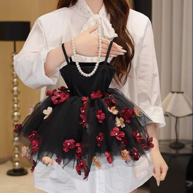 여자 공주 여름 푹신한 드레스 유행 2025 스커트 새로운 아동 의류 새로운 어린이 입체 서스펜더 스커트