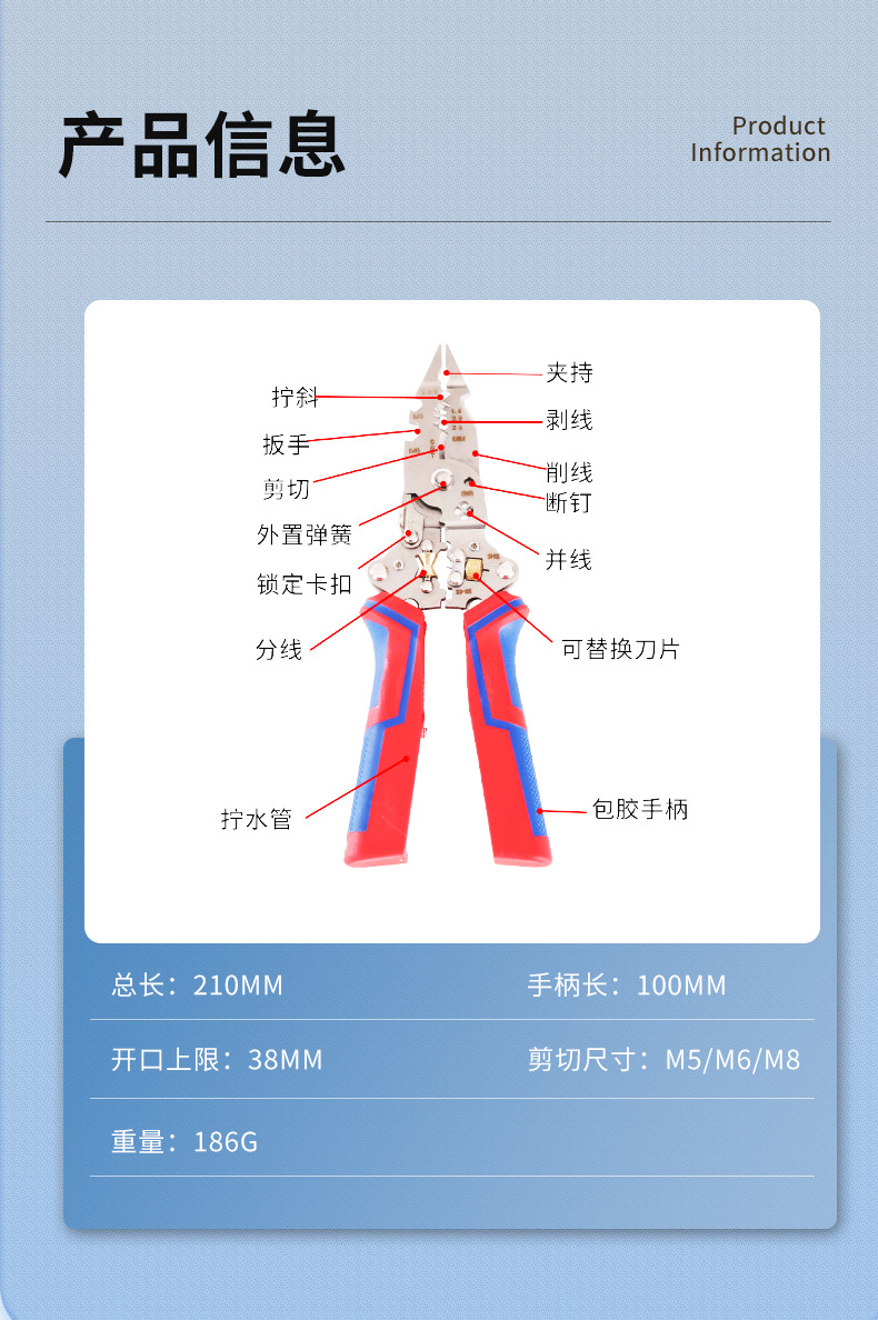• [빨간색과 노란색 손잡이] 전기 테스트 모델 8-in-1 전기공 와이어 스트리퍼