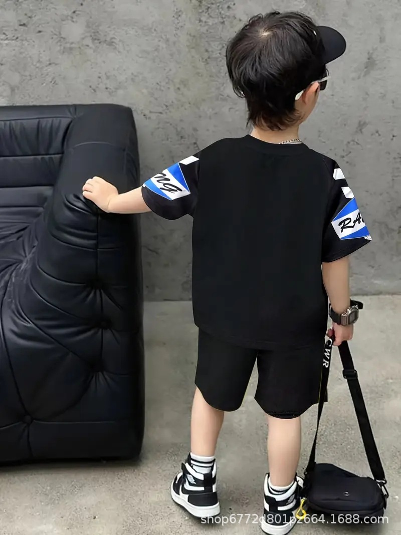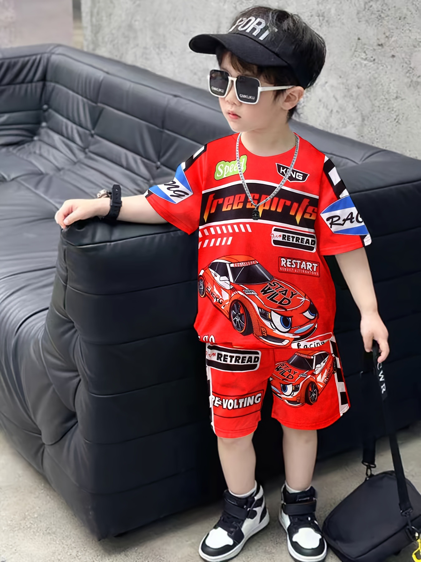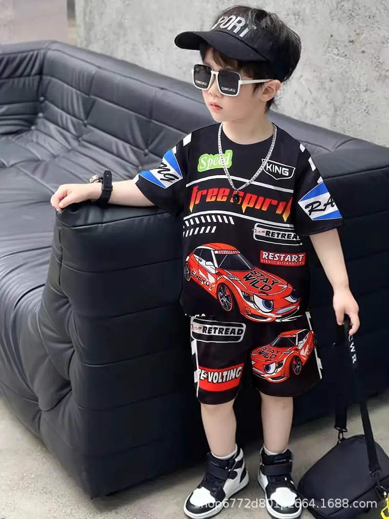 유럽과 미국 소년 여름 인기 디지털 인쇄 자동차 위치 인쇄 + 반바지 투피스 세트 [개발용]