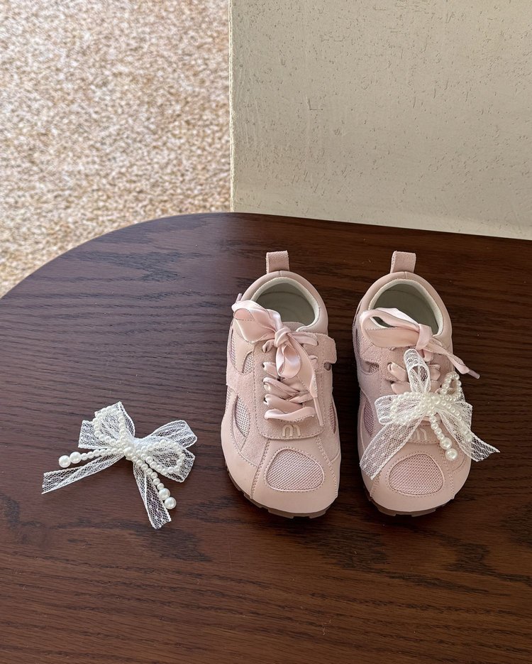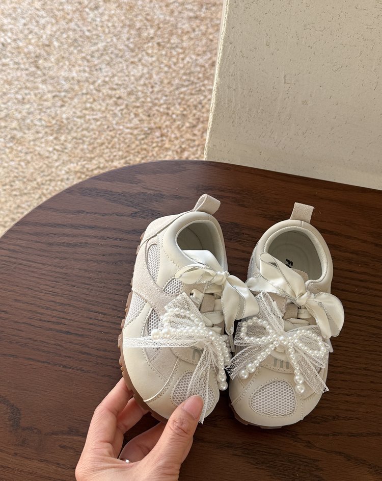 여아용 한국형 봄 운동화, 진주꽃 공주 구두, 캐주얼 흰색 구두, 어린이 도덕훈련화, 부드러운 밑창 운동화