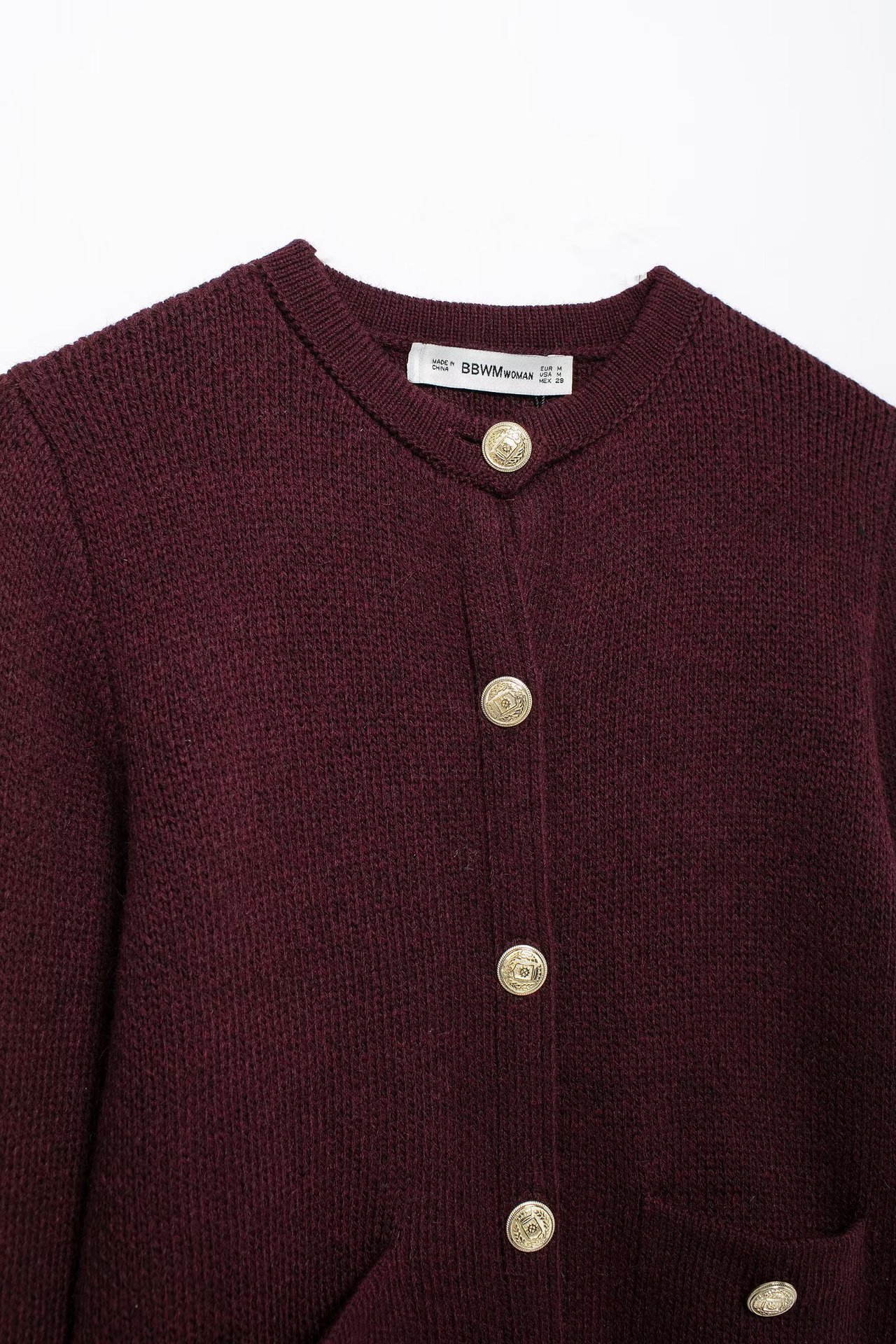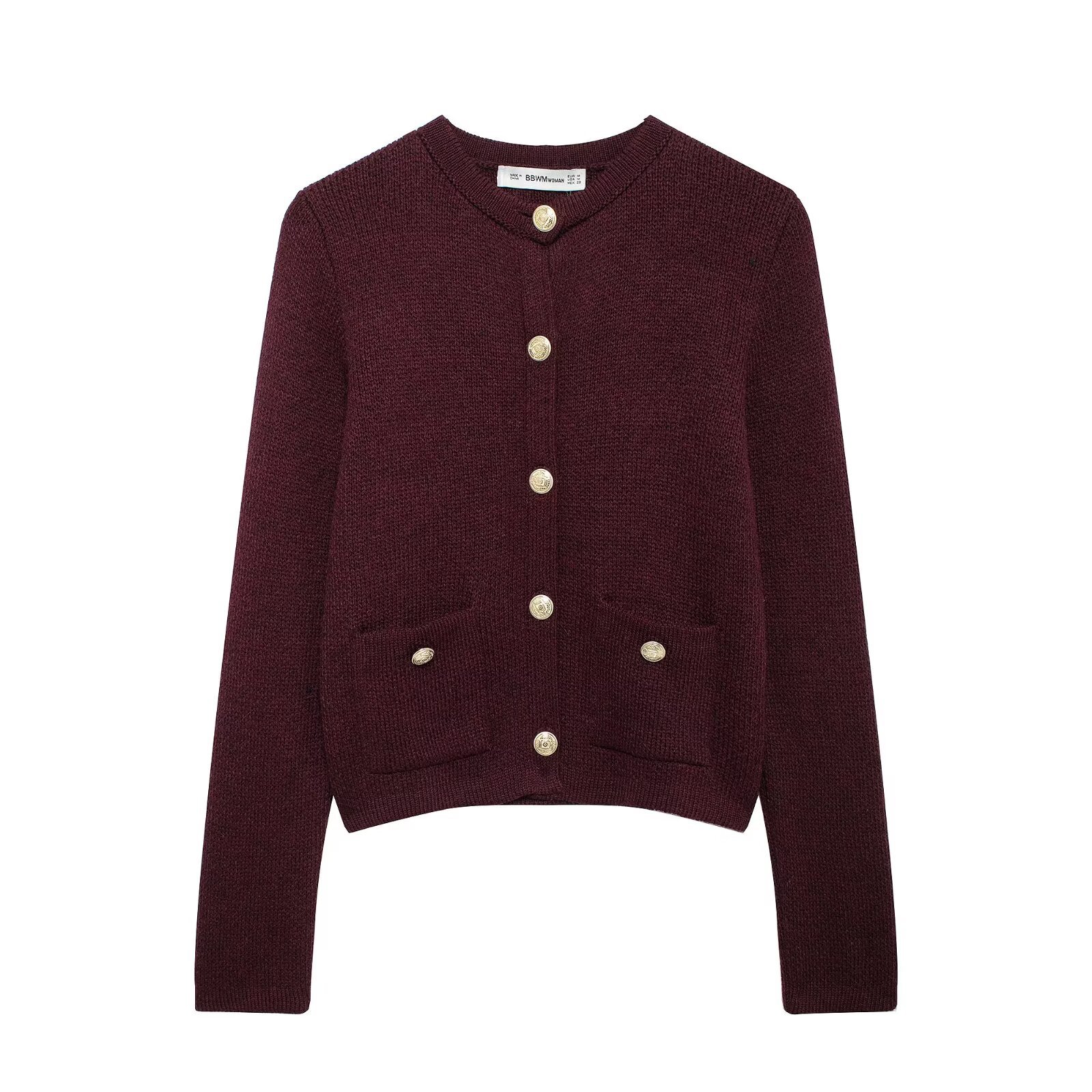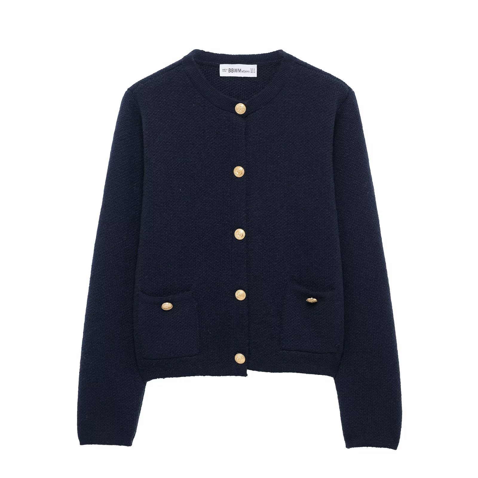 국경 간 유럽과 미국 스타일의 AliExpress 인기 여성 의류 대외 무역 골드 브레스트 니트 재킷 카디건