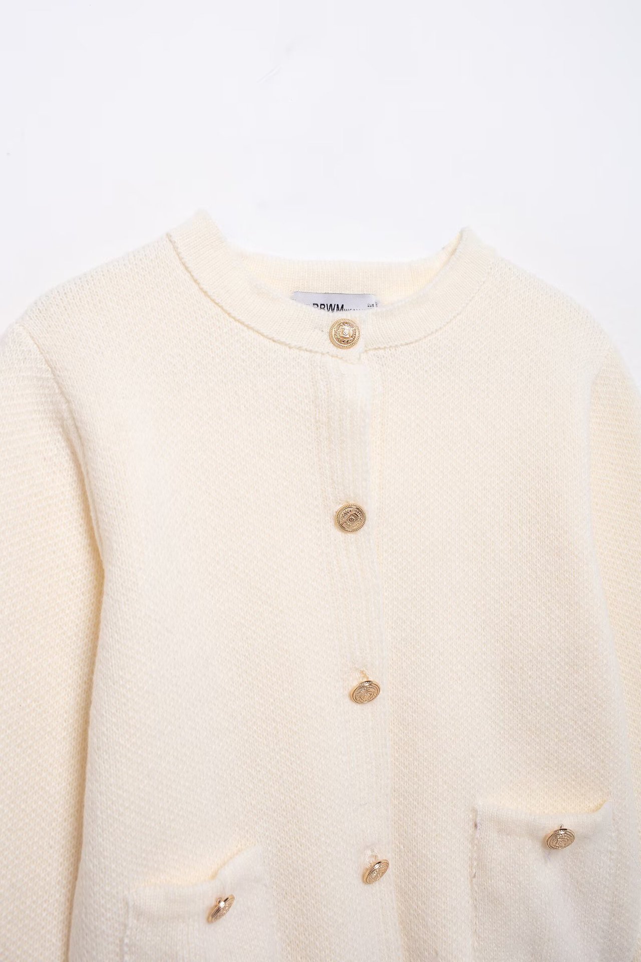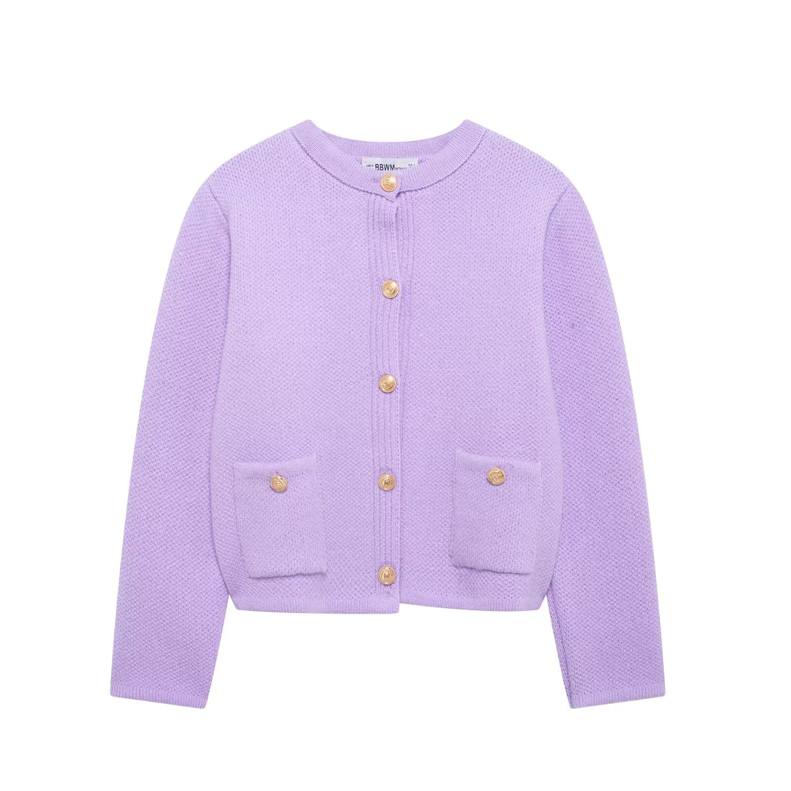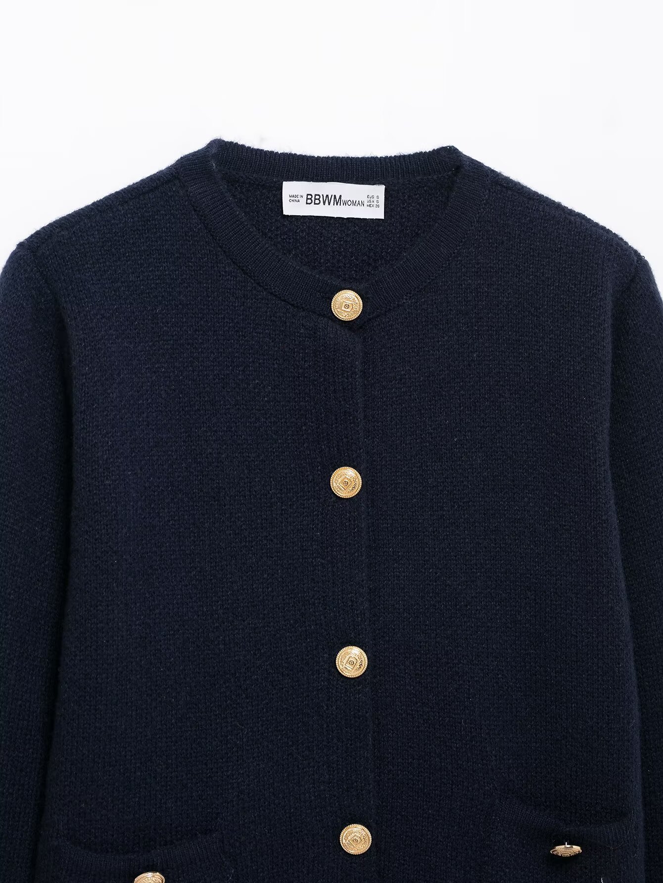 국경 간 유럽과 미국 스타일의 AliExpress 인기 여성 의류 대외 무역 골드 브레스트 니트 재킷 카디건