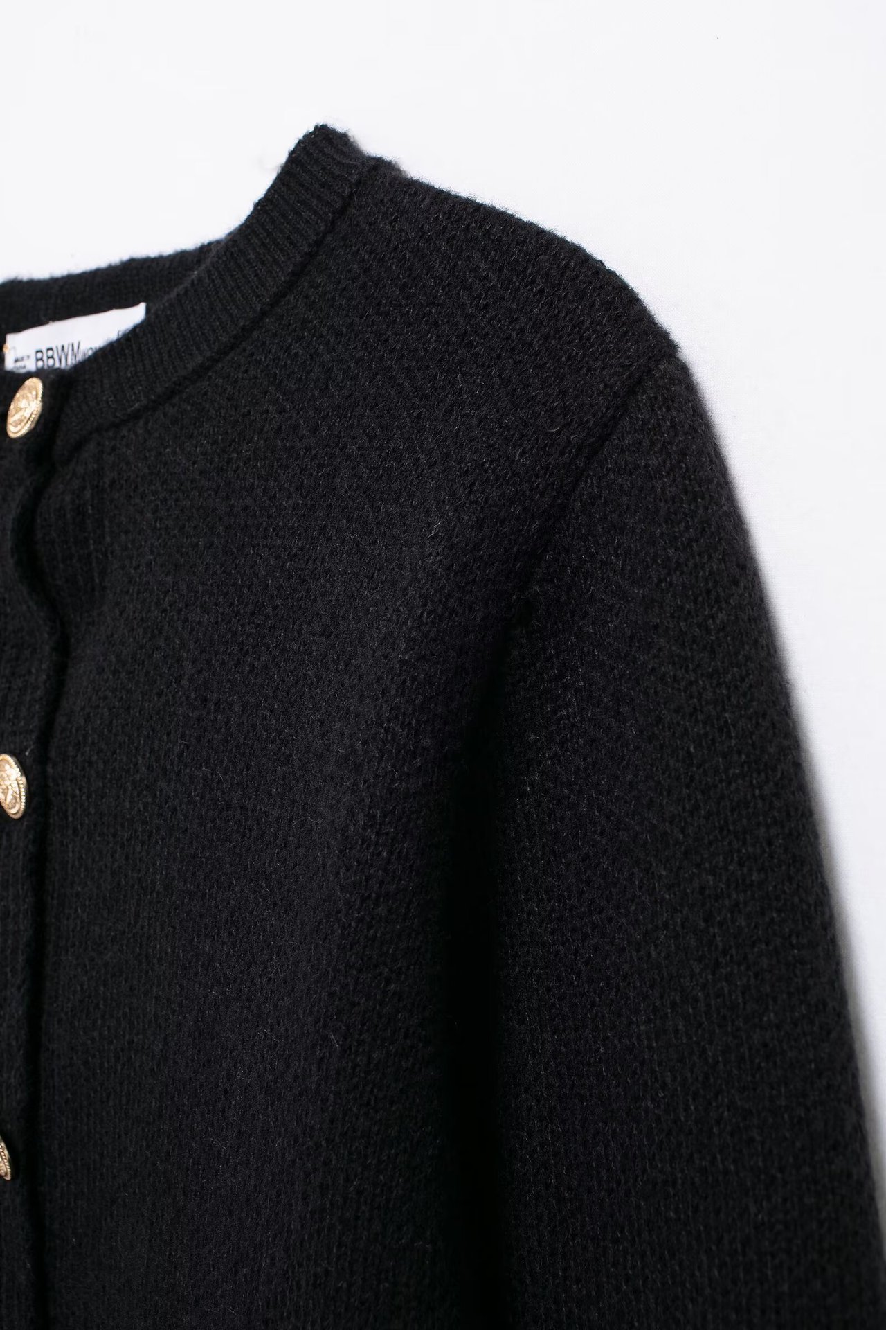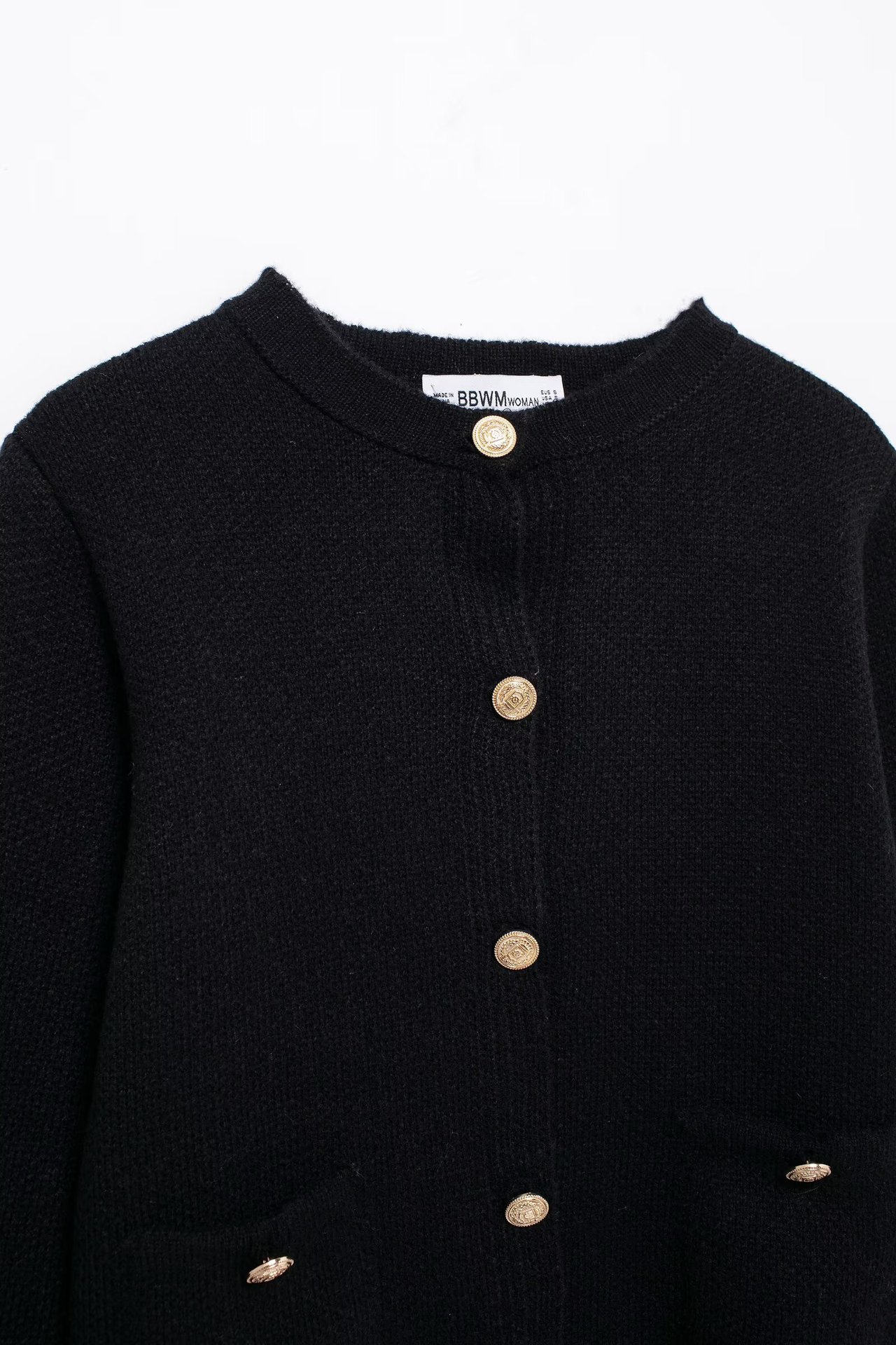 국경 간 유럽과 미국 스타일의 AliExpress 인기 여성 의류 대외 무역 골드 브레스트 니트 재킷 카디건스토어 가기