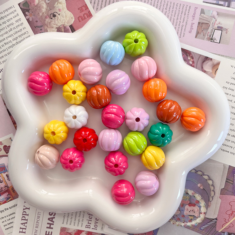 다채로운 아크릴 페인트 호박 비즈 diy 휴대 전화 체인 목걸이 키 체인 가방 교수형 루즈 비즈 쥬얼리 액세서리스토어 가기