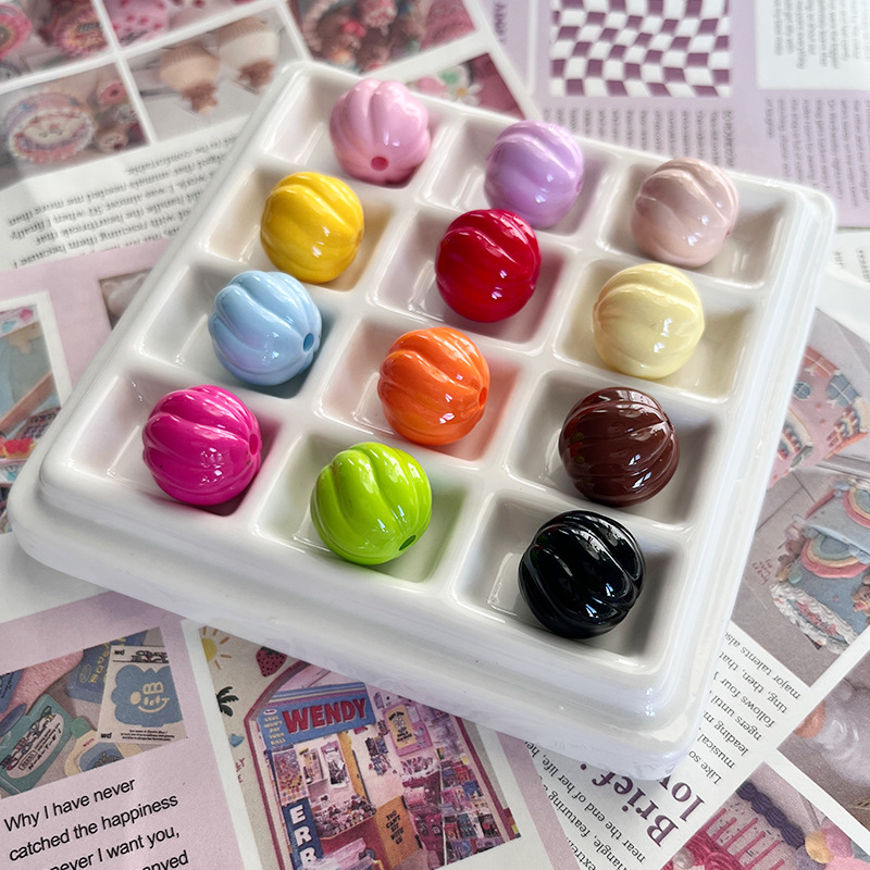 다채로운 아크릴 페인트 호박 비즈 diy 휴대 전화 체인 목걸이 키 체인 가방 교수형 루즈 비즈 쥬얼리 액세서리