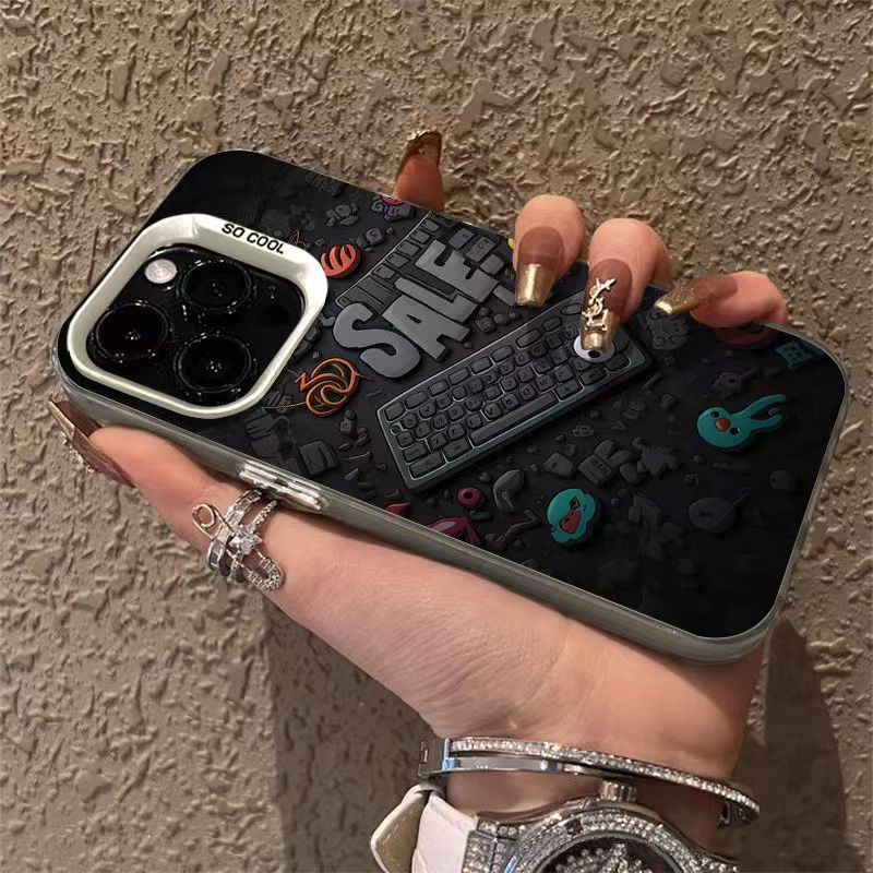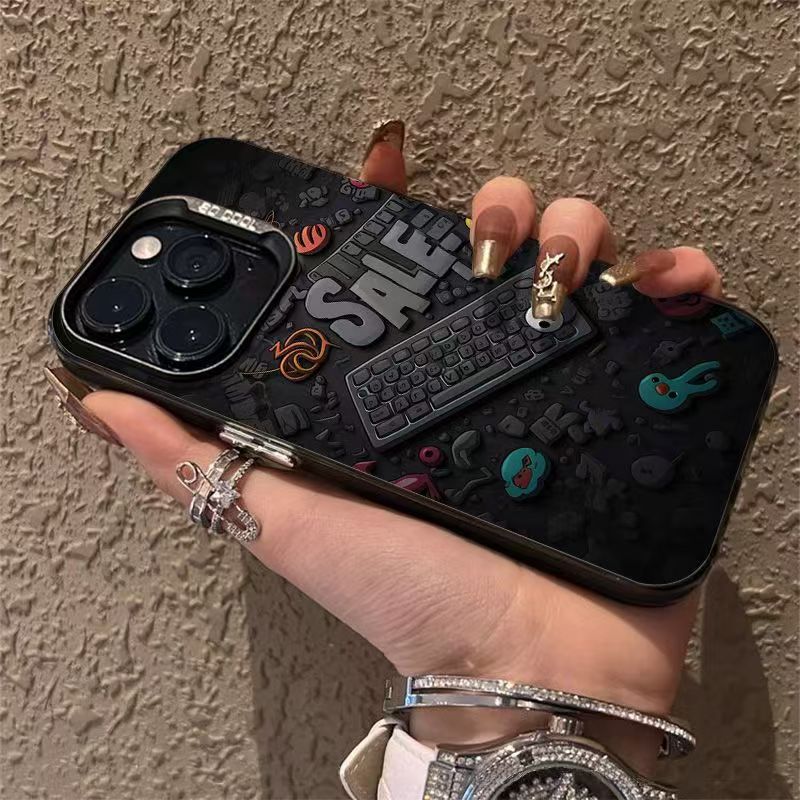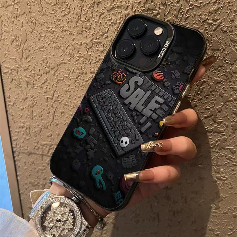 애플 16promax 전화 케이스 15 새로운 iPhone14/13 창조적 인/국경을 넘기위한 낙서 만화 키보드스토어 가기