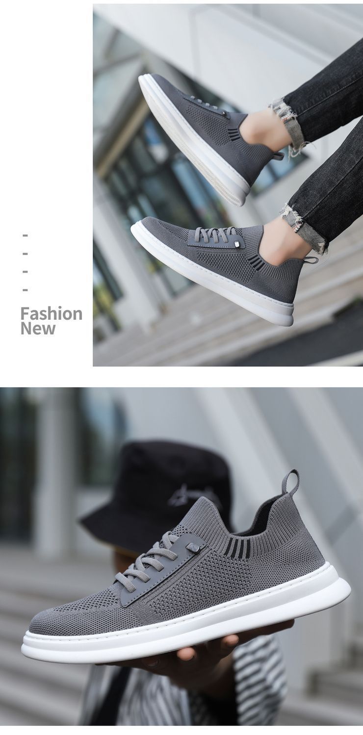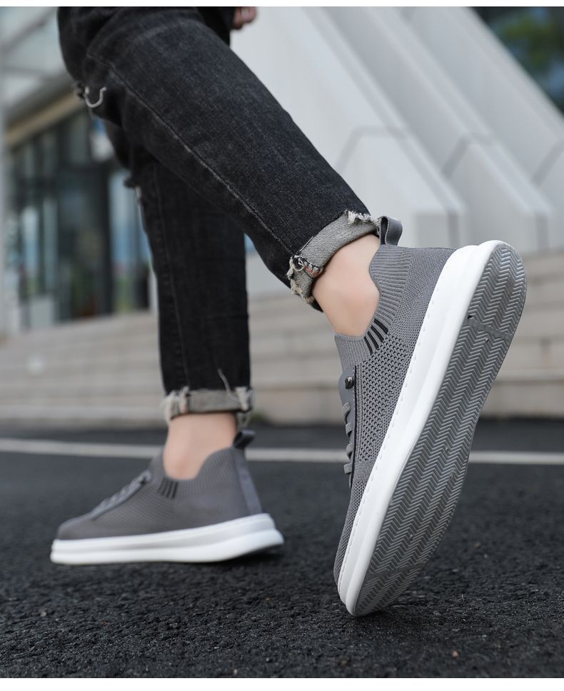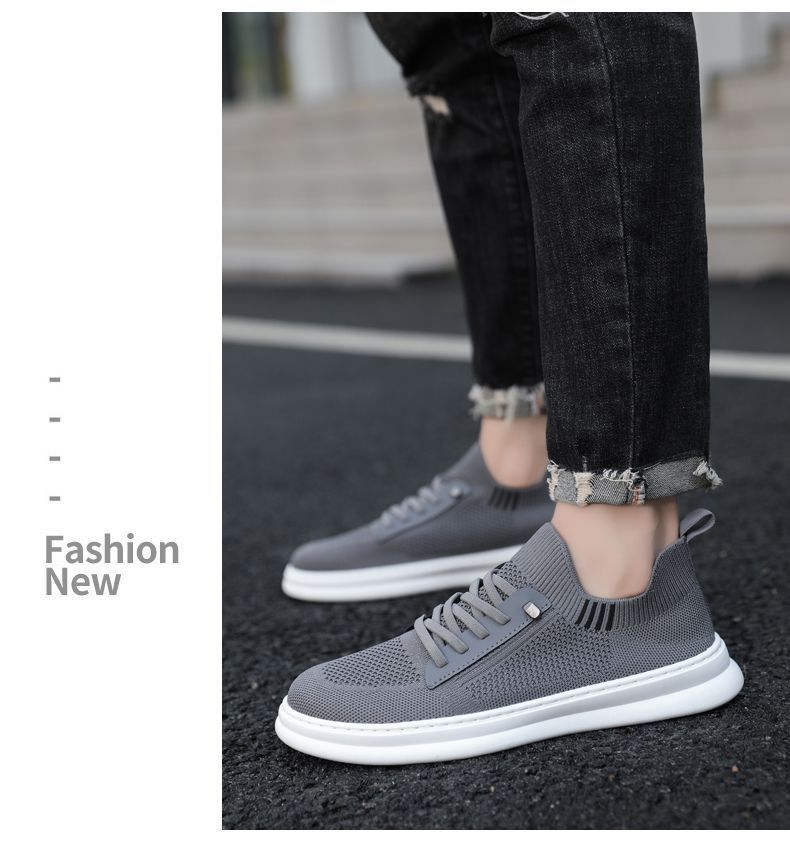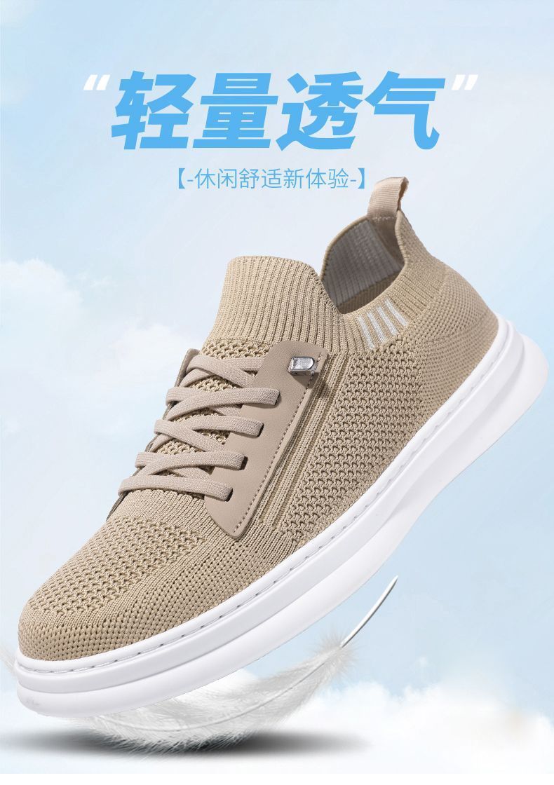 남성용 여름 통기성 캐주얼 슈즈, 슬립온 남성화, 하이엔드 얇은 플라이 니트 슈즈, 메쉬 양말형 슈즈스토어 가기