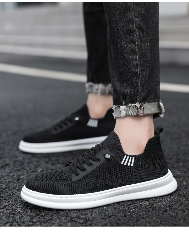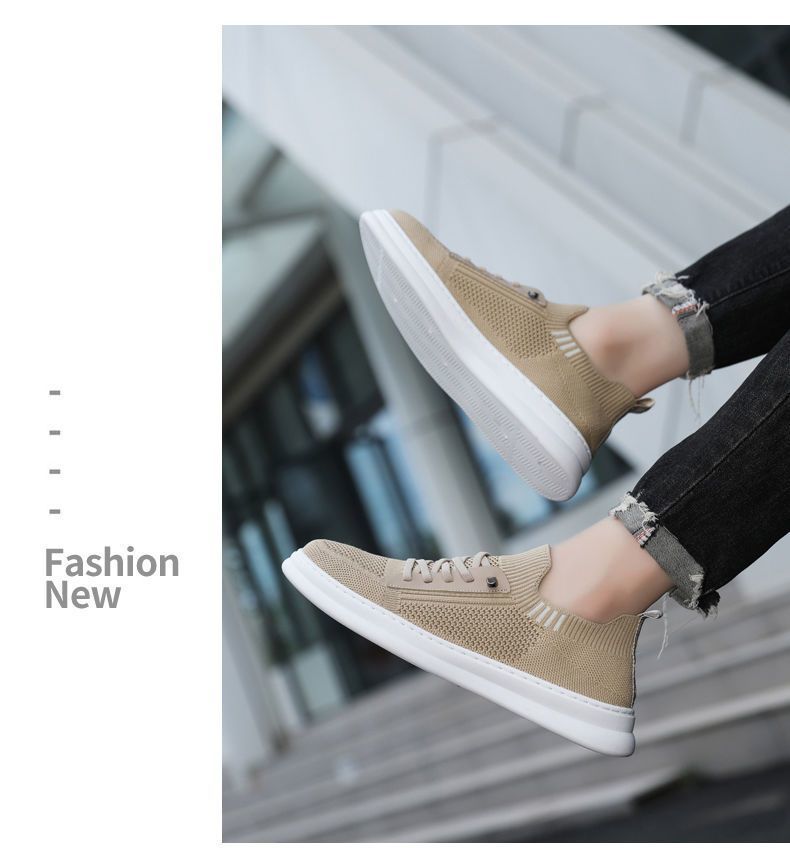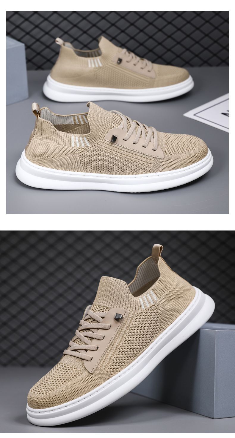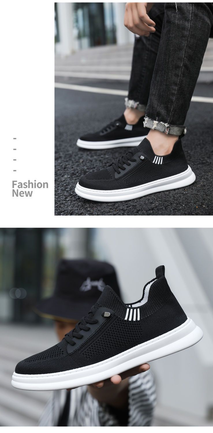 남성용 여름 통기성 캐주얼 슈즈, 슬립온 남성화, 하이엔드 얇은 플라이 니트 슈즈, 메쉬 양말형 슈즈스토어 가기