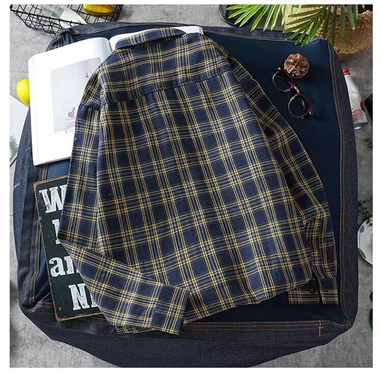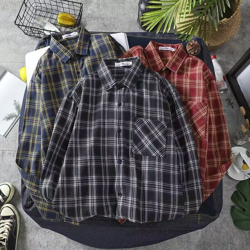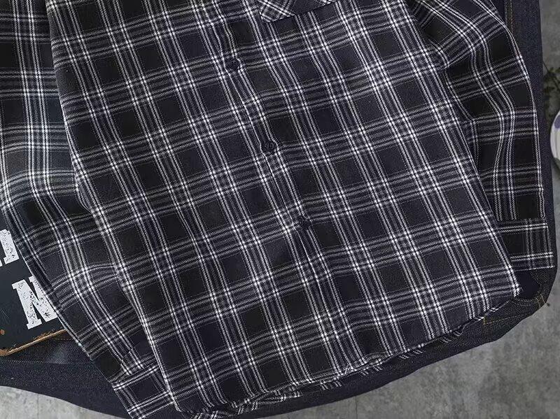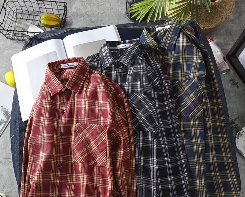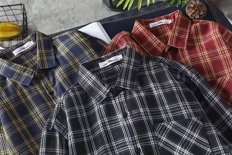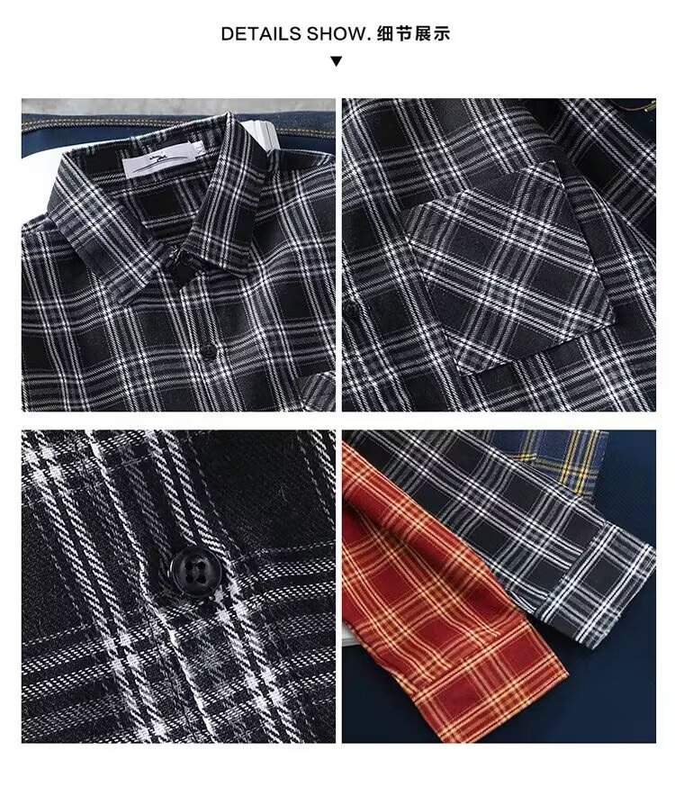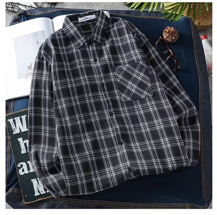 하이 퀄리티 아메리칸 스타일 레트로 격자 무늬 셔츠 긴팔 남성용 느슨한 옷깃 카디건 캐주얼 얇은 선 스크린 셔츠스토어 가기