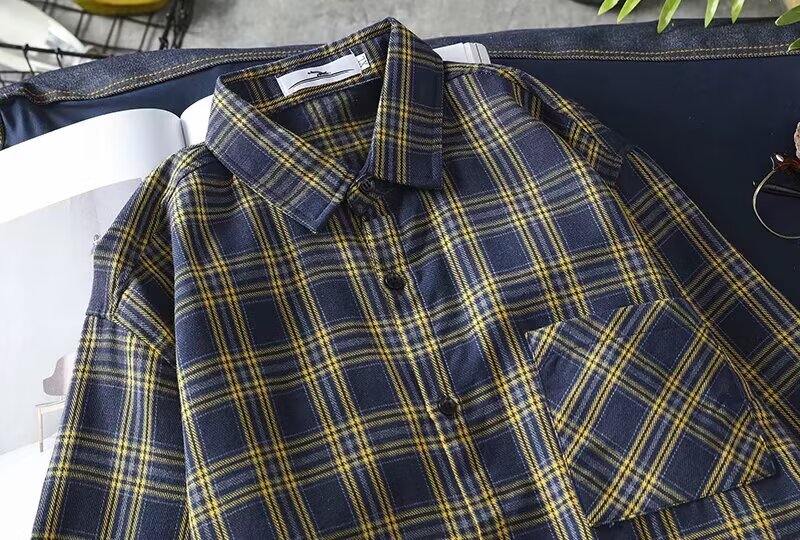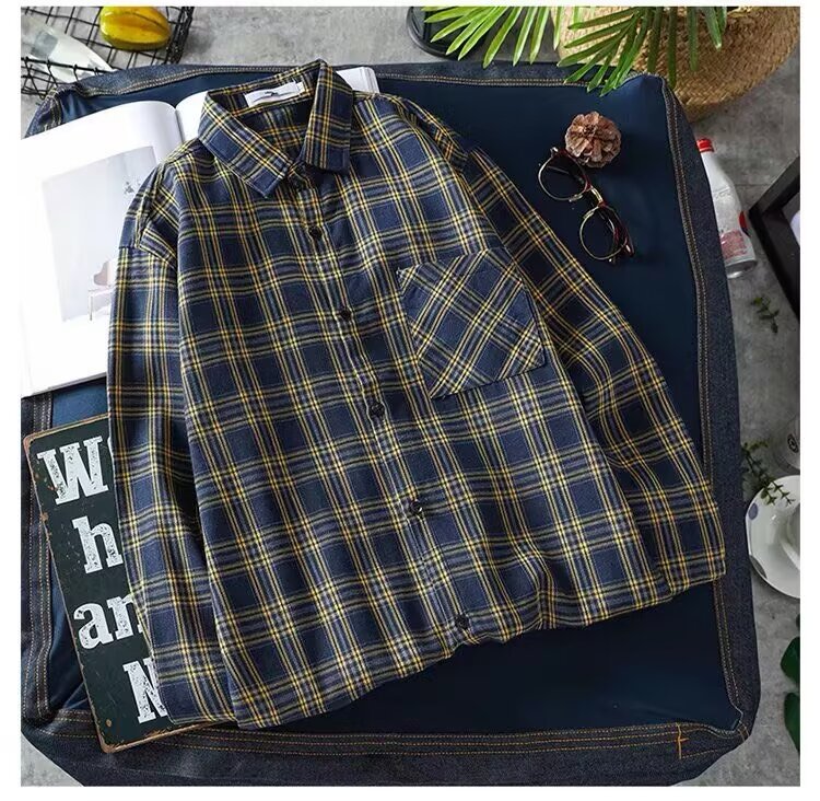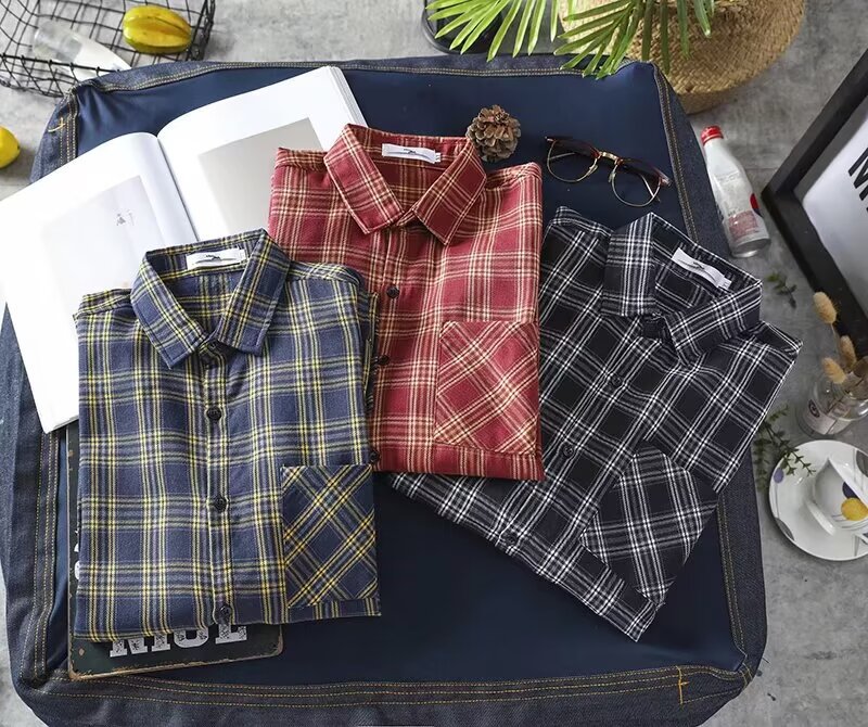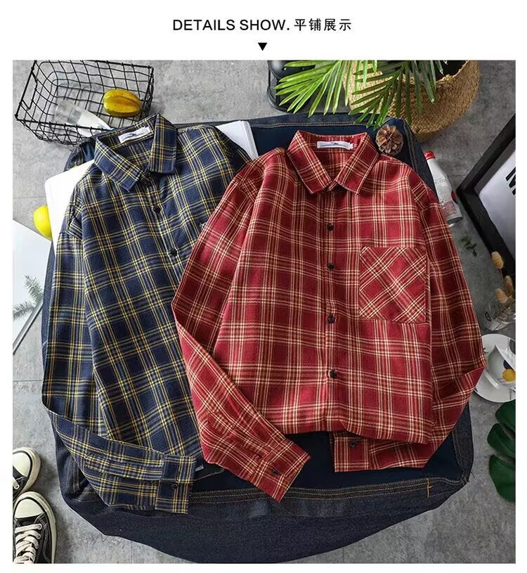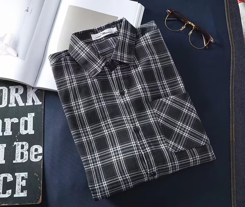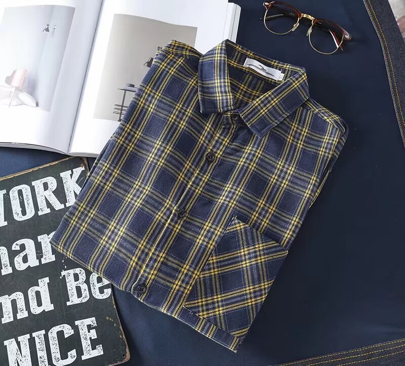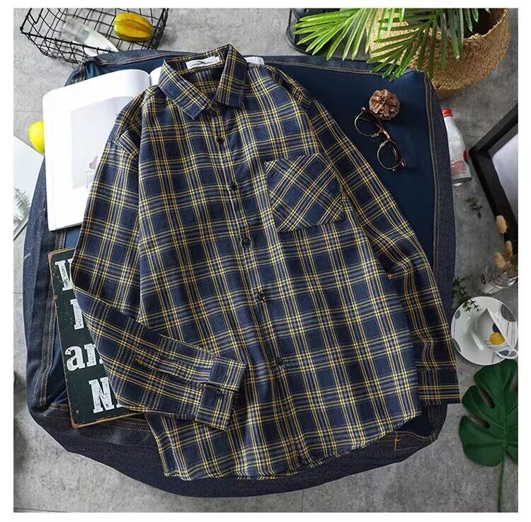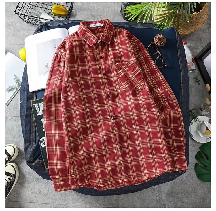 하이 퀄리티 아메리칸 스타일 레트로 격자 무늬 셔츠 긴팔 남성용 느슨한 옷깃 카디건 캐주얼 얇은 선 스크린 셔츠스토어 가기