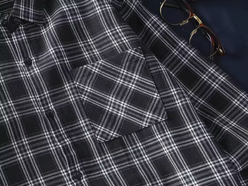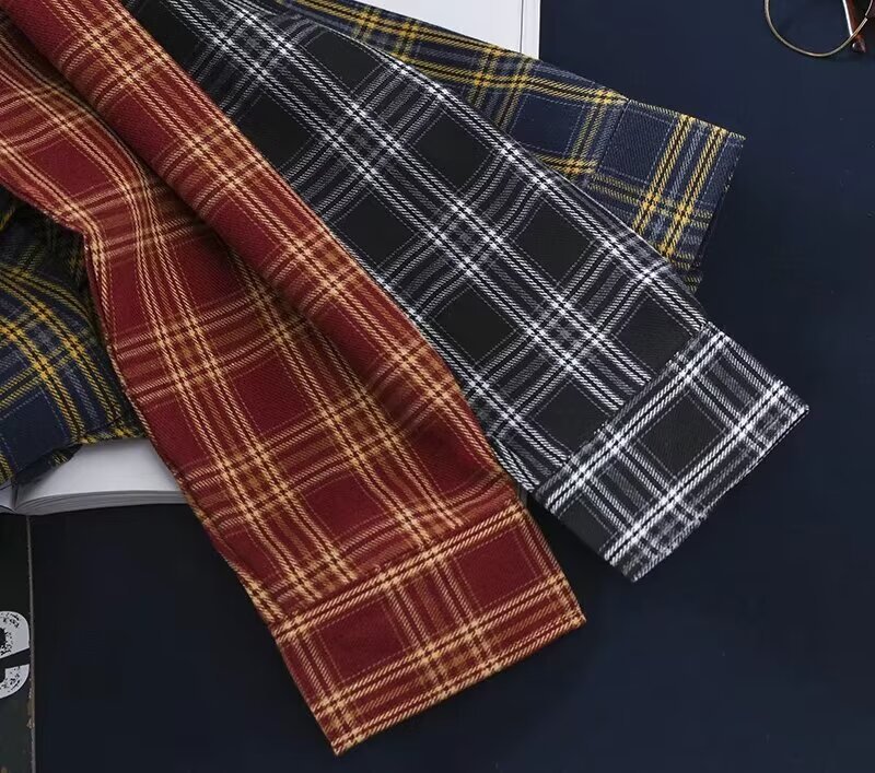 하이 퀄리티 아메리칸 스타일 레트로 격자 무늬 셔츠 긴팔 남성용 느슨한 옷깃 카디건 캐주얼 얇은 선 스크린 셔츠
