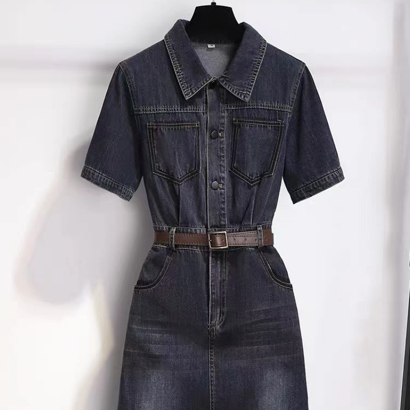 얇은 데님 원피스 데님 스커트 여름 2024 새로운 패션 웨스턴 스타일 중간 길이의 타이트 허리 슬리밍 스플릿 스커트