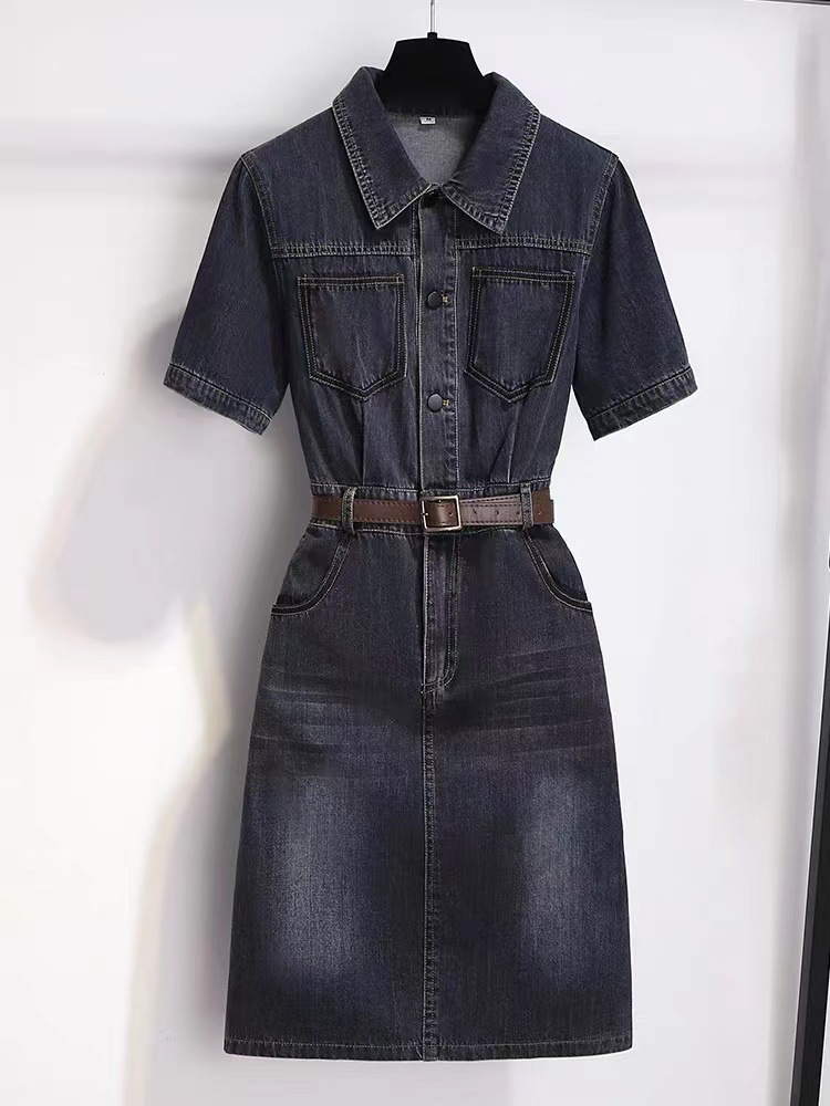 얇은 데님 원피스 데님 스커트 여름 2024 새로운 패션 웨스턴 스타일 중간 길이의 타이트 허리 슬리밍 스플릿 스커트스토어 가기