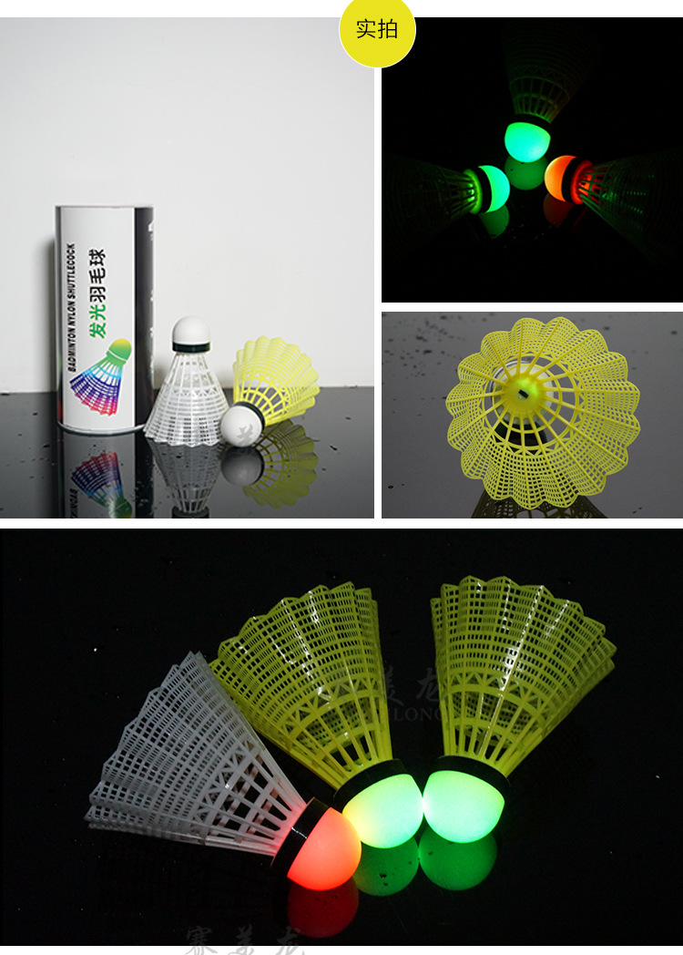 방풍 나일론 야광 배드민턴, 내구성이 뛰어나고 야간 사용이 가능하며 야간 사용이 가능한 형광등이 장착된 야간 플래시 볼
