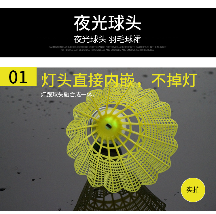 방풍 나일론 야광 배드민턴, 내구성이 뛰어나고 야간 사용이 가능하며 야간 사용이 가능한 형광등이 장착된 야간 플래시 볼스토어 가기