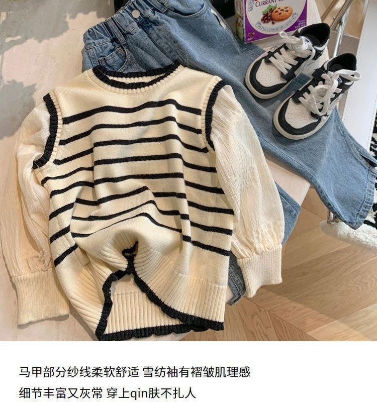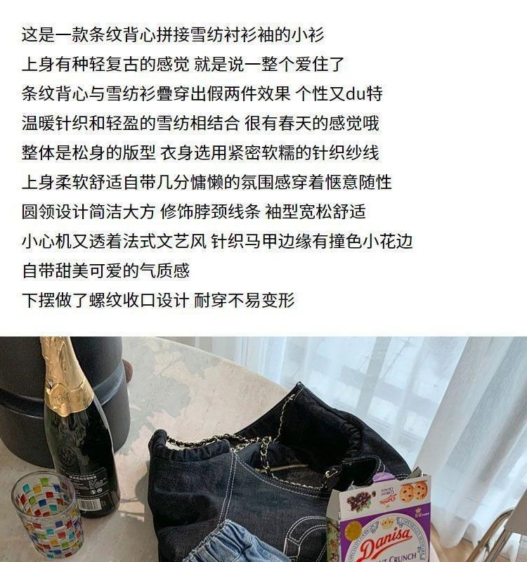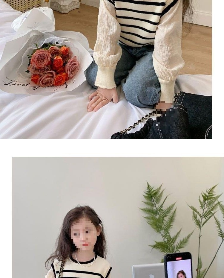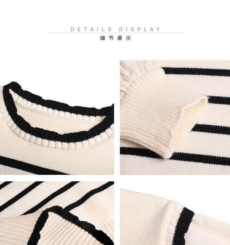 • 흰색 줄무늬 스웨터/시폰 소매 업그레이드/보풀이 쉽지 않음