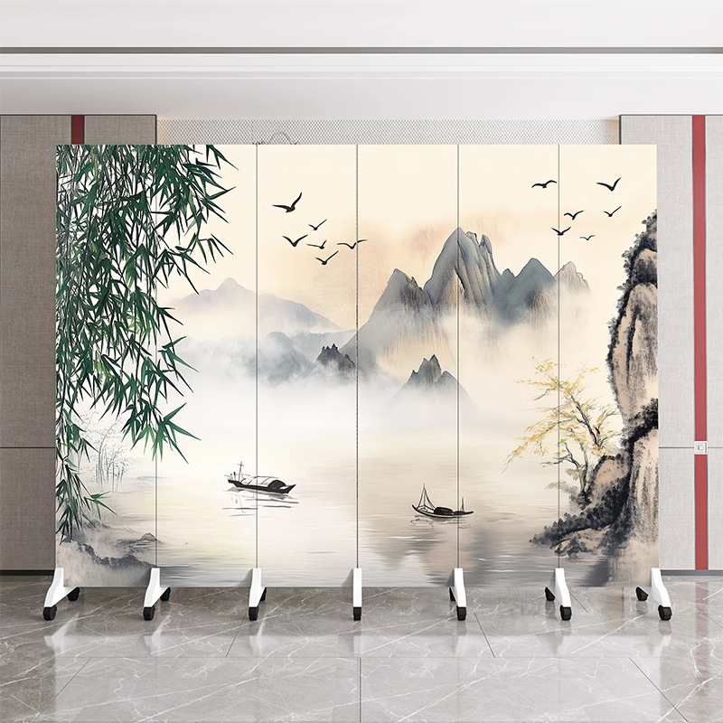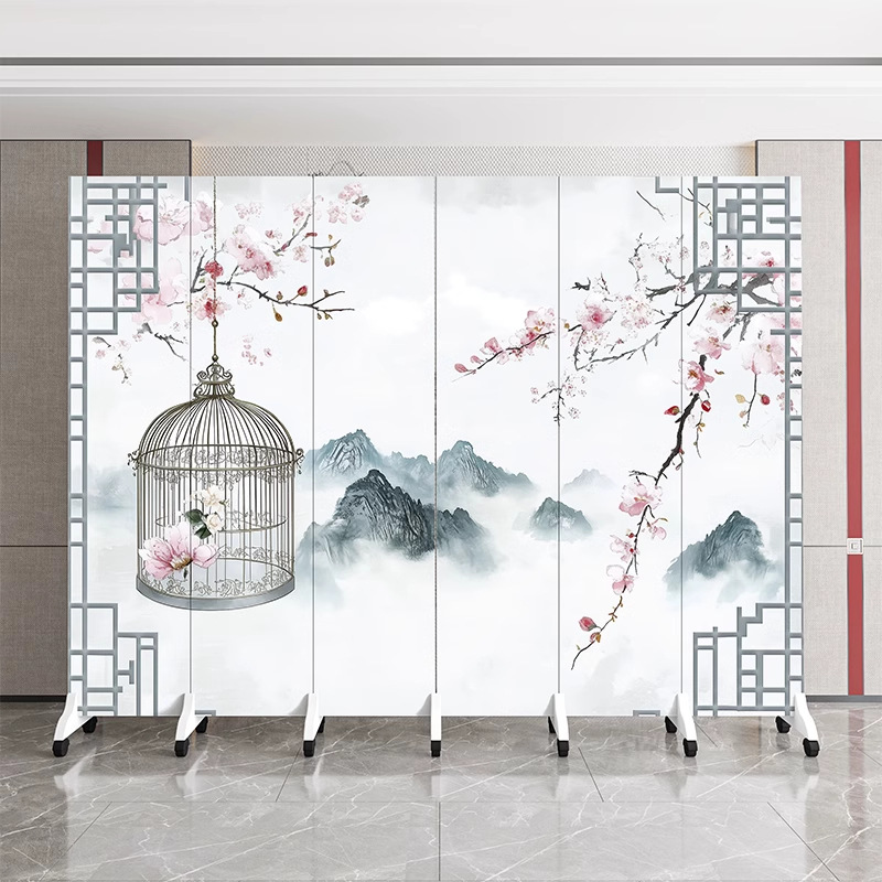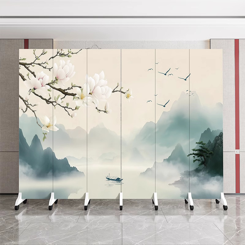새로운 중국 스타일의 스크린 파티션 거실 사무실 접이식 모바일 간단한 침실 음영 스크린 도어