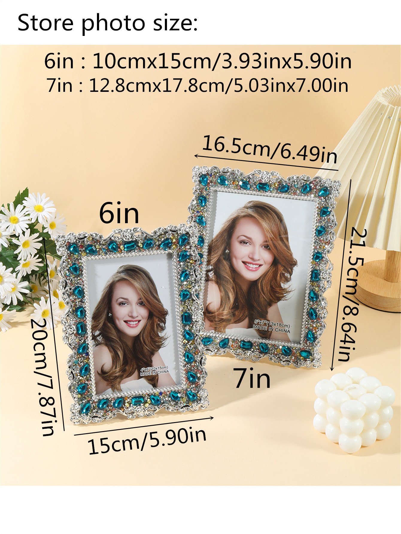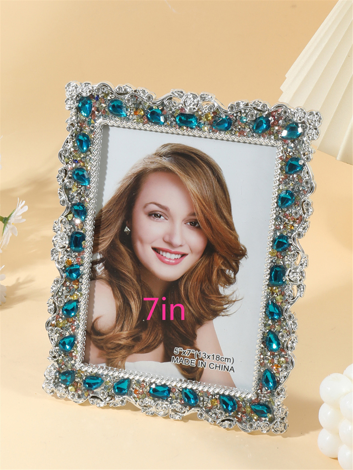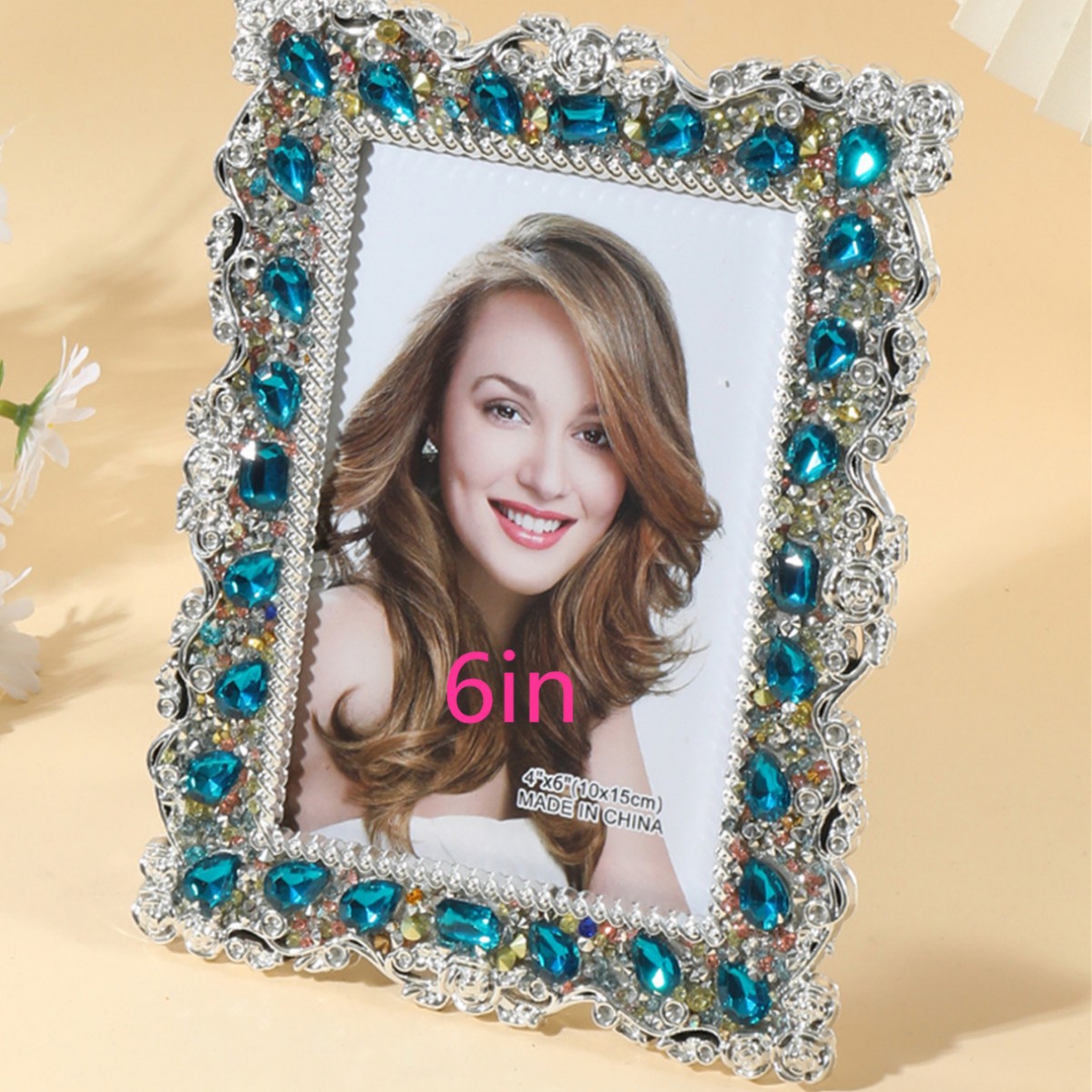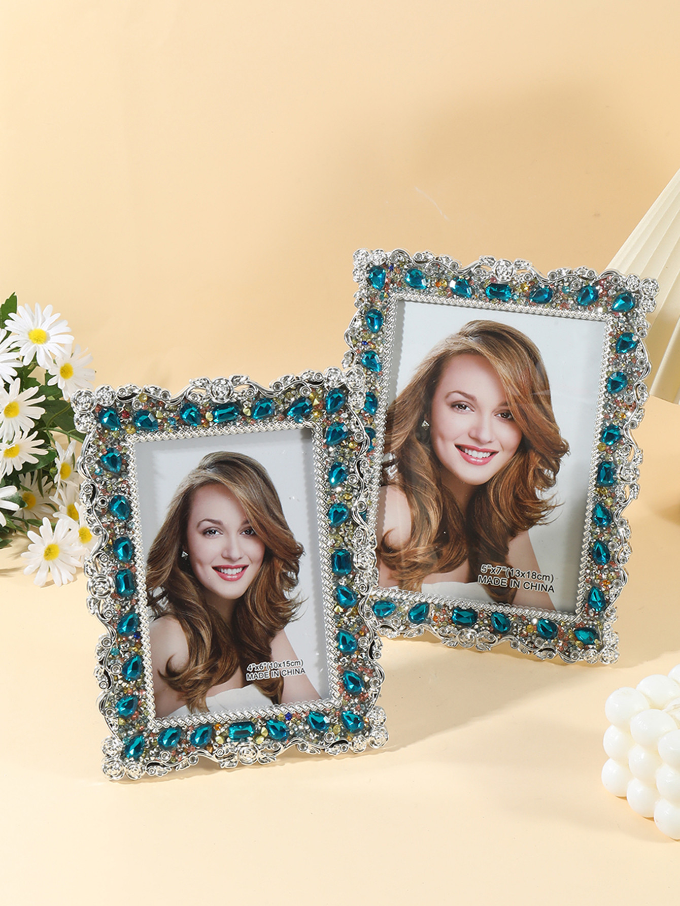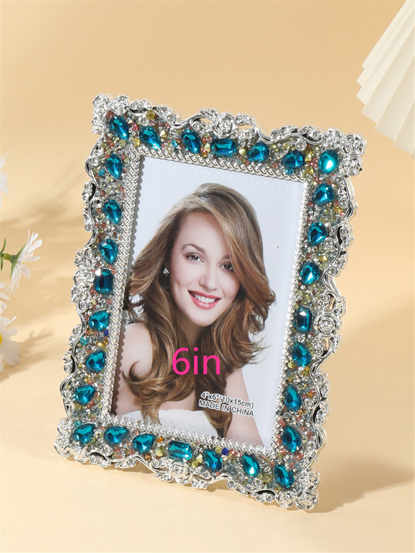 2043 포토 프레임 크리 에이 티브 심플 라인스톤 삽입 수지 사진 프레임 라이트 럭셔리 하이 엔드 홈 장식 테이블 장식품