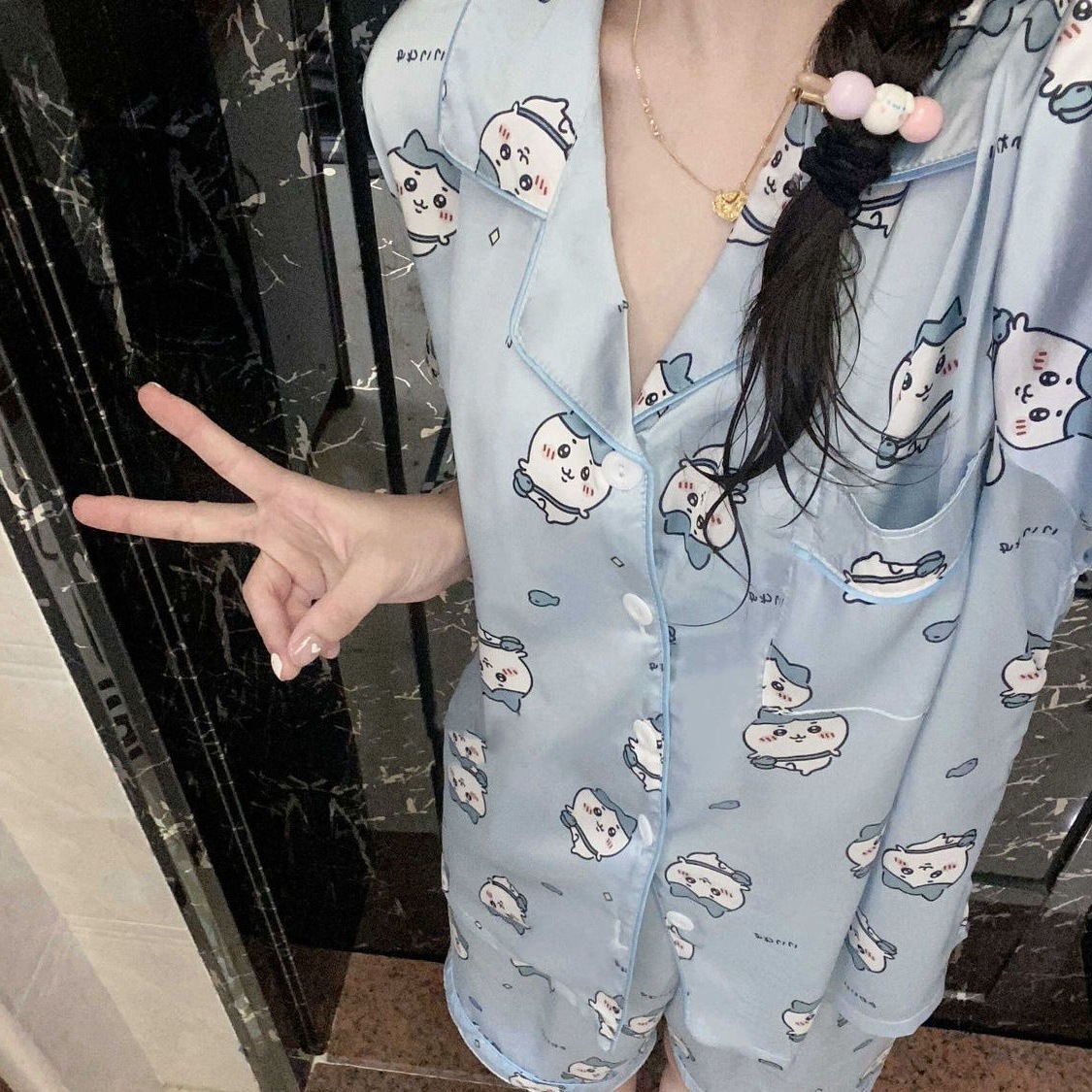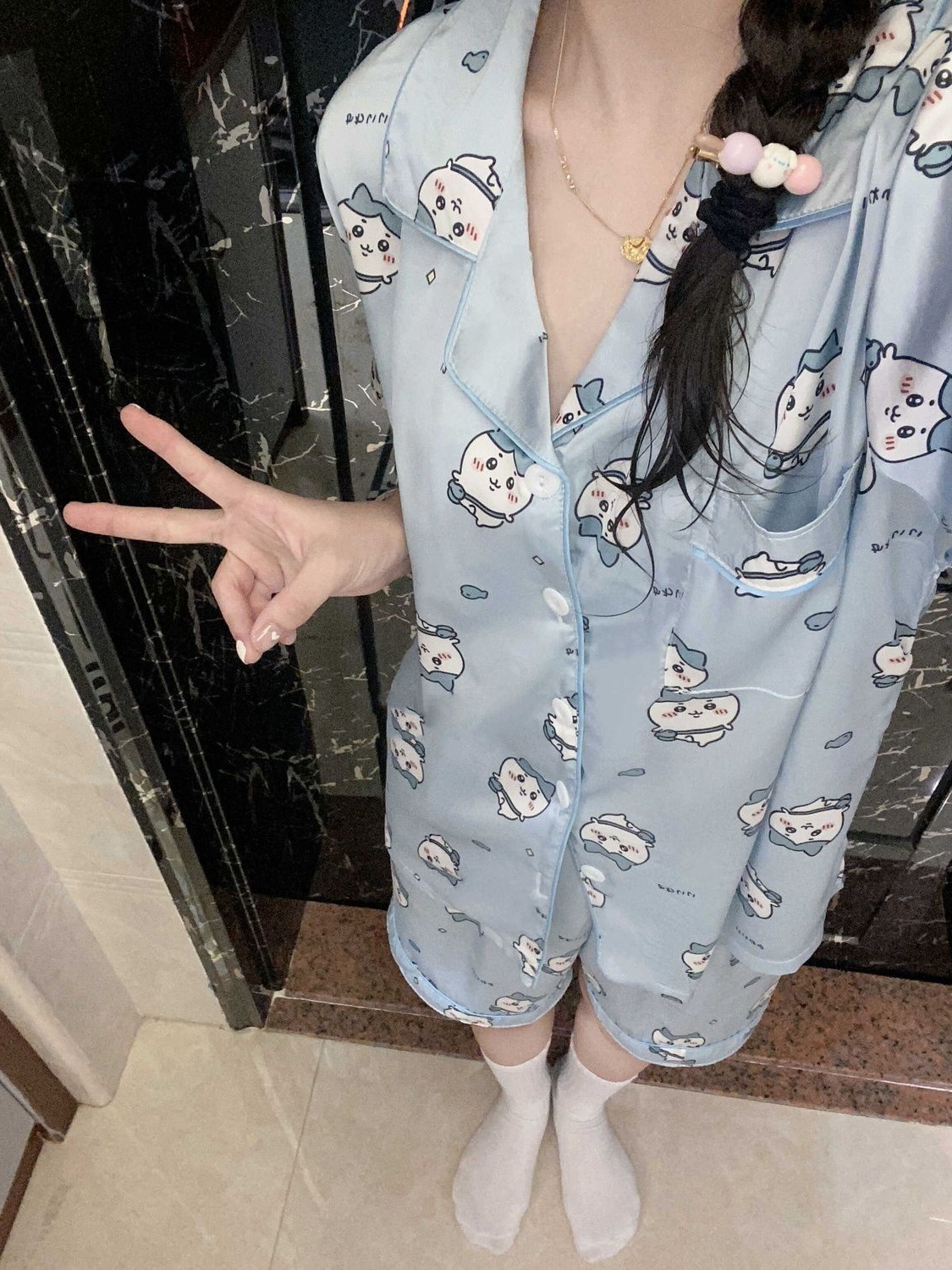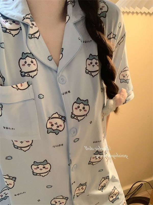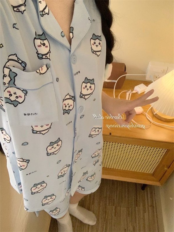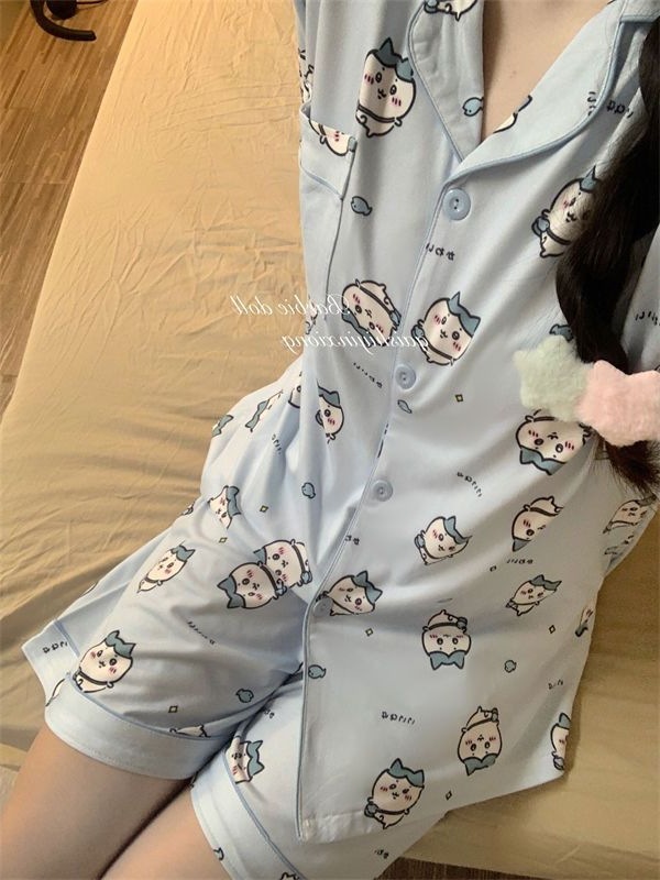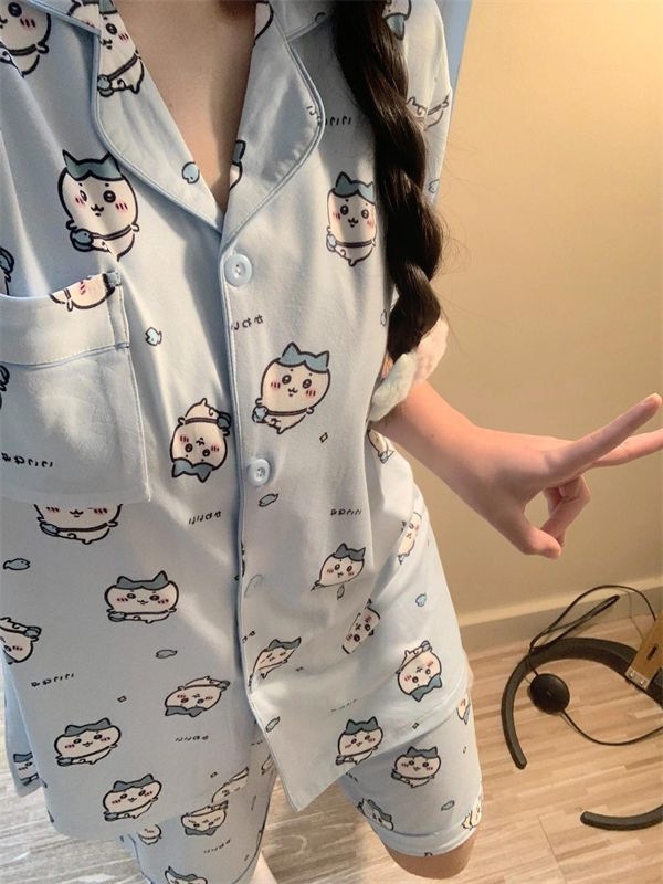 지이카 와우 작은 여덟 잠옷 여성 Ins 스타일 여름 새로운 일본식 한국식 반소매 홈 의류 세트 외장
