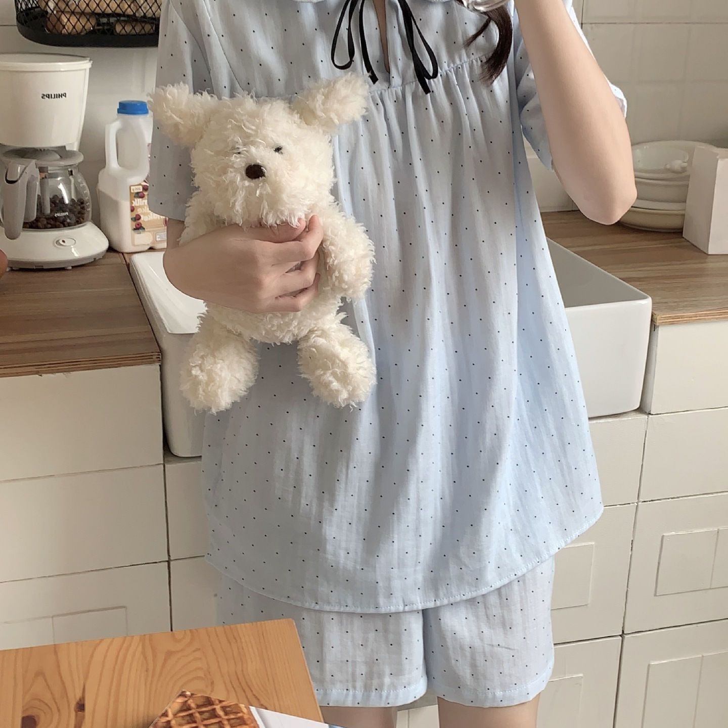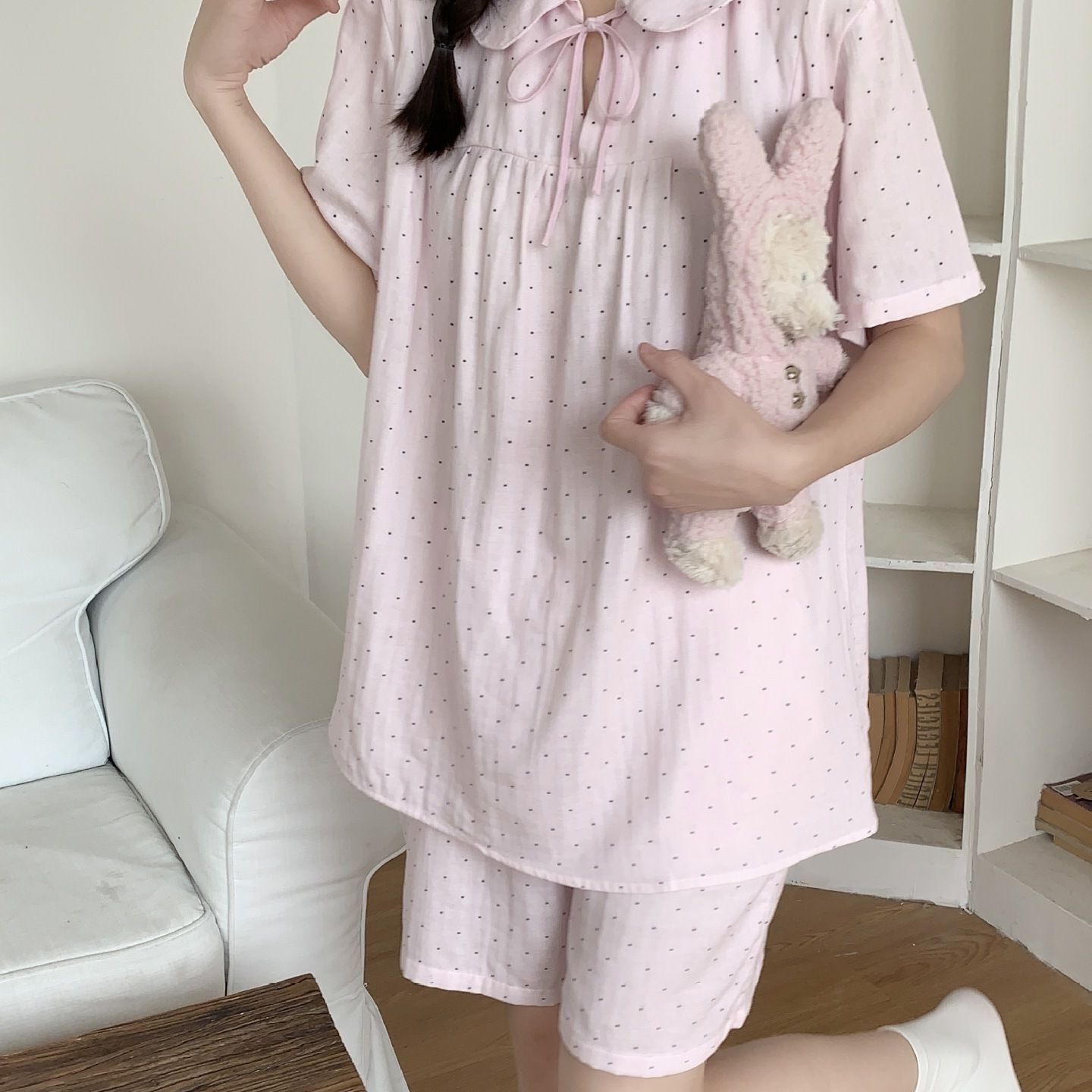 지이카 와우 작은 여덟 잠옷 여성 Ins 스타일 여름 새로운 일본식 한국식 반소매 홈 의류 세트 외장스토어 가기