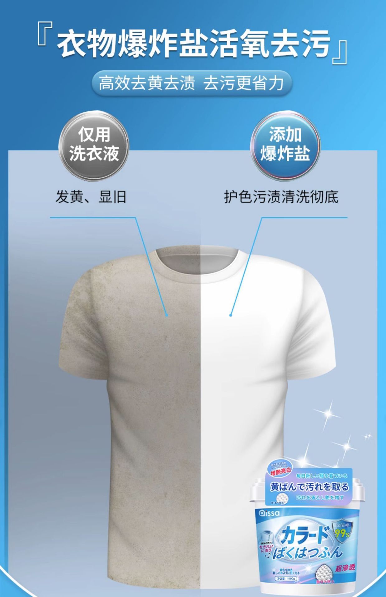 폭발성 소금 세탁 얼룩 제거제, 강력한 유아용 흰색 의류 색상 표백제, 노란색 제거 및 미백 표백제, 얼룩 제거제스토어 가기