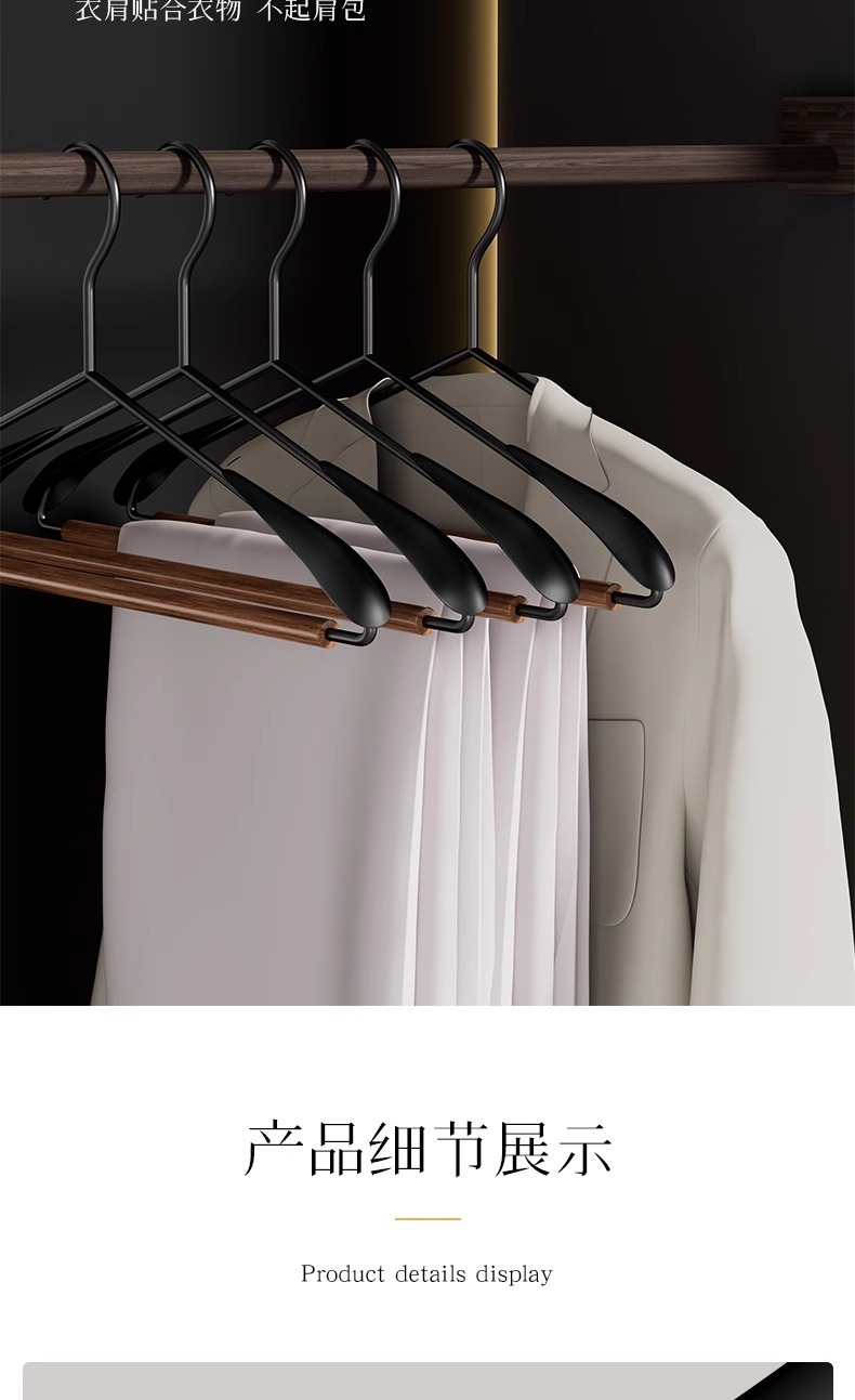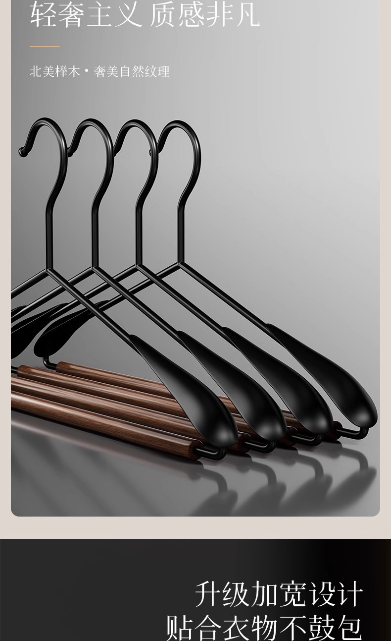 철제와 너도밤나무로 만든 두꺼운 옷걸이, 넓은 어깨, 의류 매장 및 가정용, 미끄럼 방지, 흔적 없는 옷걸이, 빨래 건조용, 레트로 스타일
