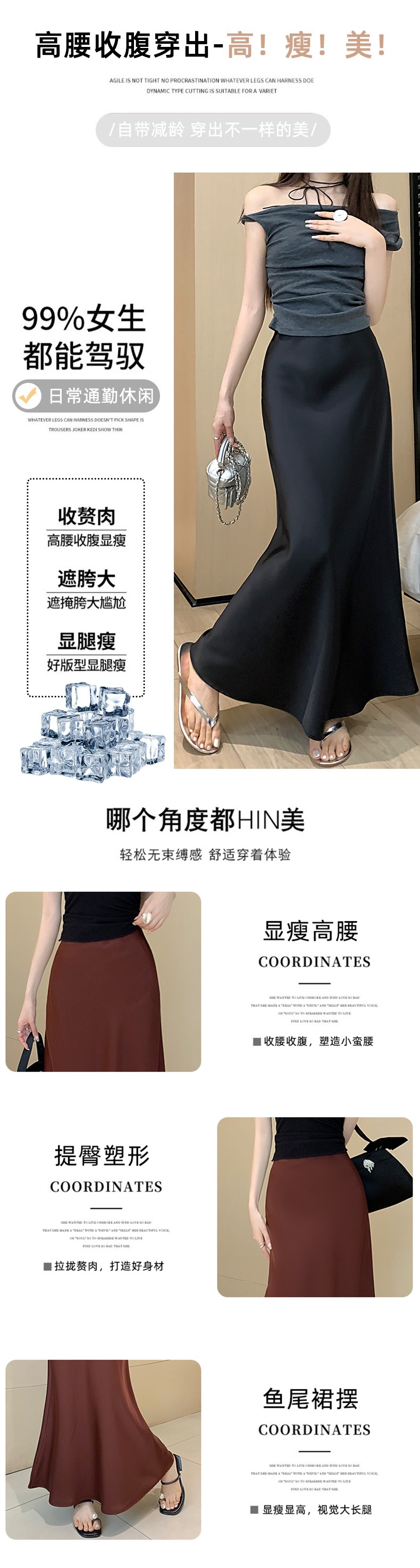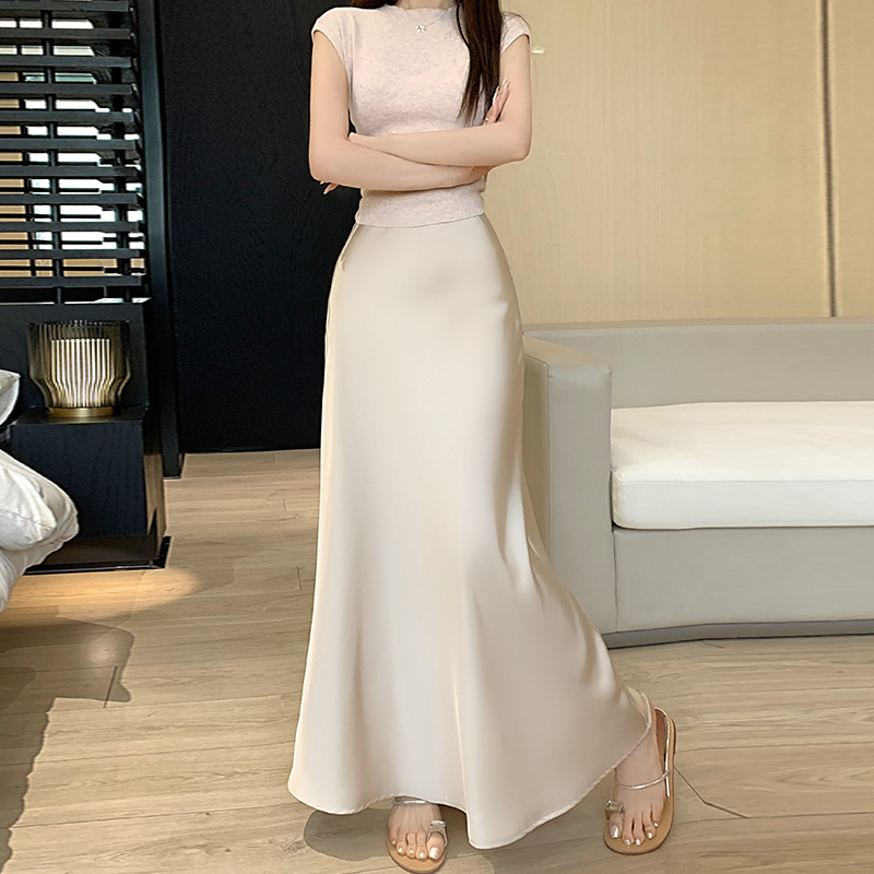 145 여성용 짧은 복고풍 새틴 힙 피쉬테일 스커트 150 키가 크고 슬림한 롱 스커트 xs스토어 가기