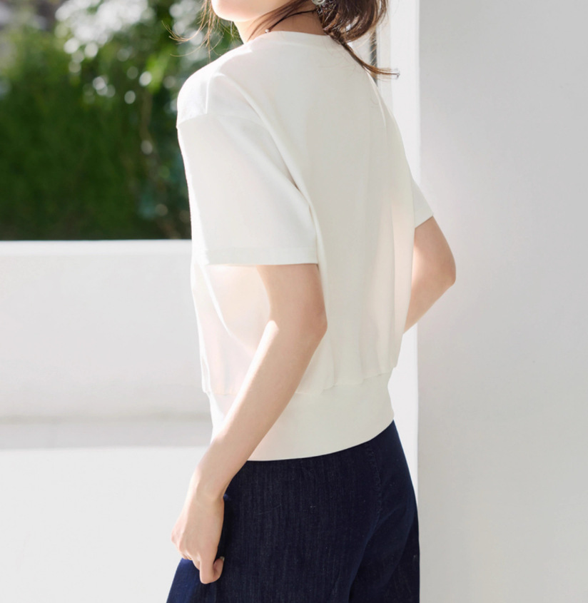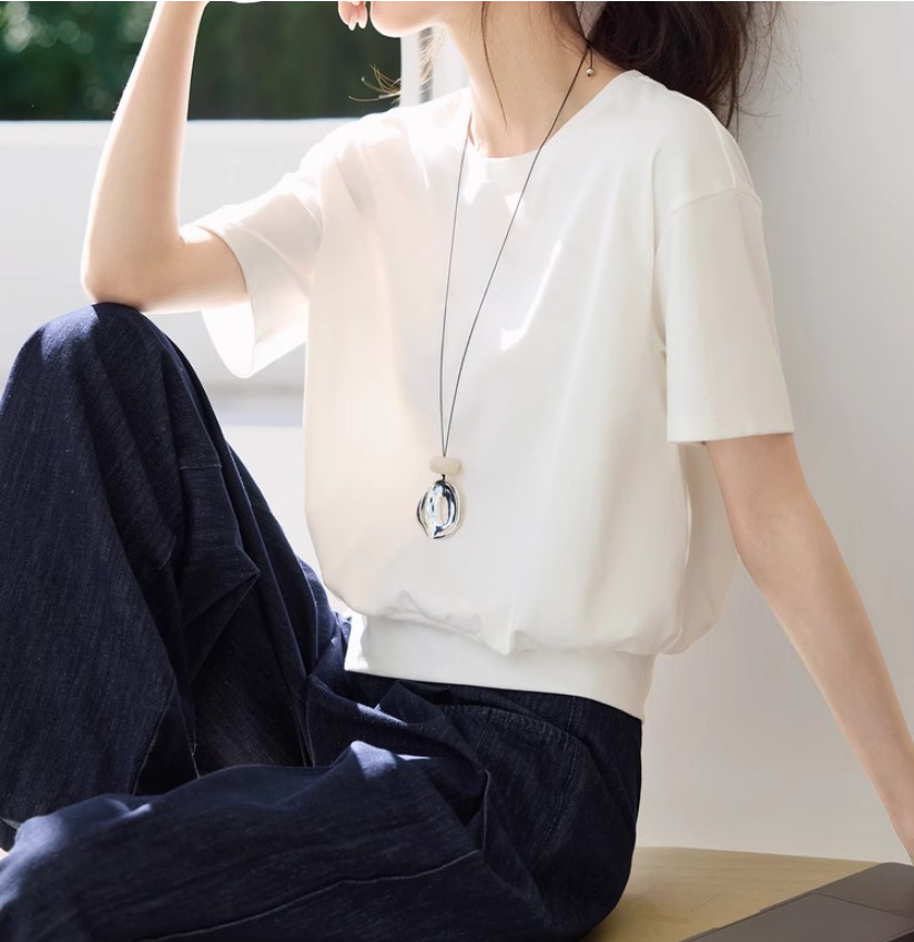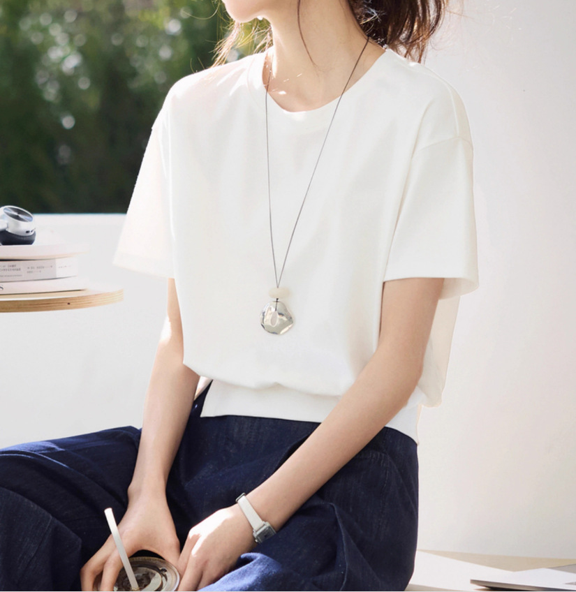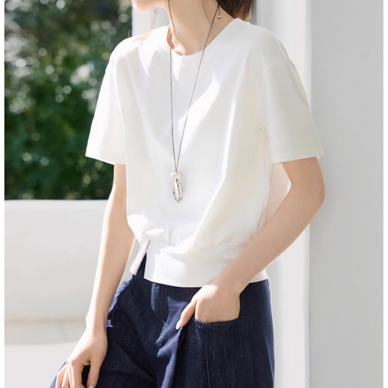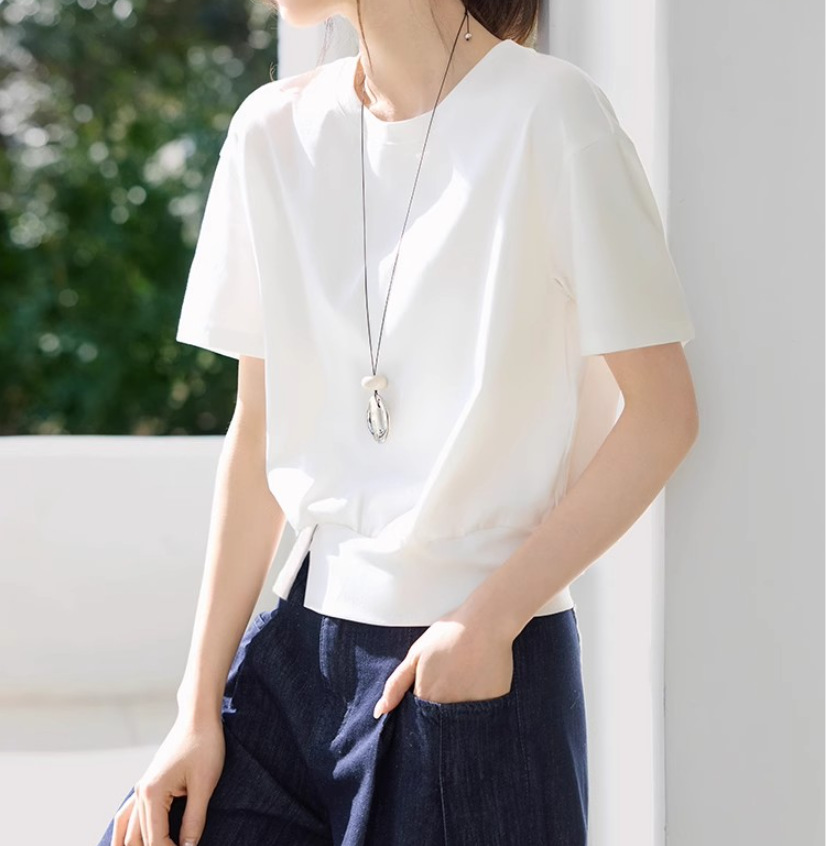 캐주얼 다목적 디자인 센스 헴스 스플릿 장식 버클 반팔 티셔츠 2025 여름 새 티셔츠 여성스토어 가기