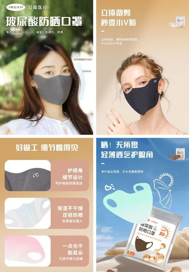 Haishi Hainuo 히알루 론산 자외선 차단제 마스크 여성용 자외선 차단 여름 마스크 얼음 실크 얇은 눈 보호 자외선 차단제 마스크스토어 가기