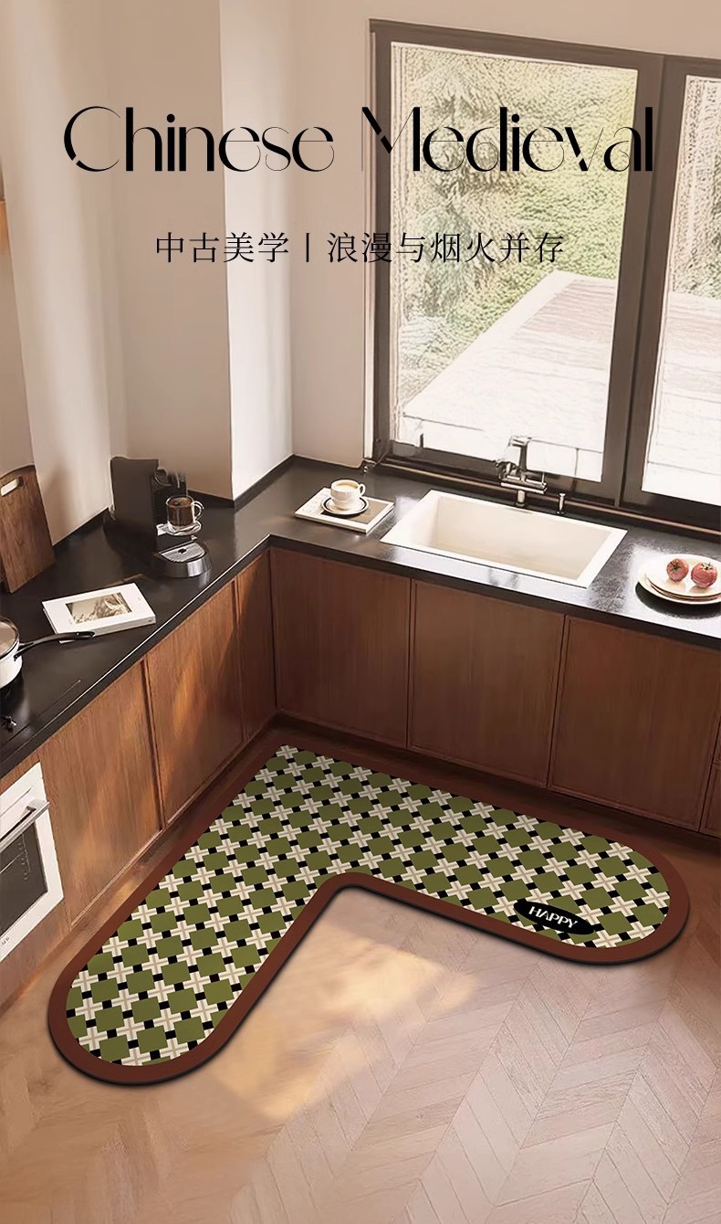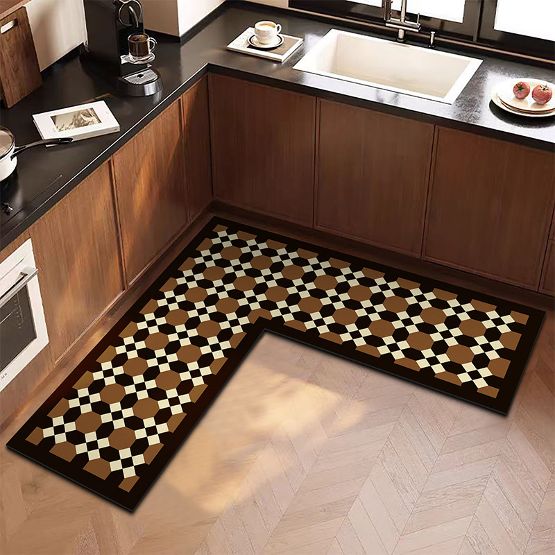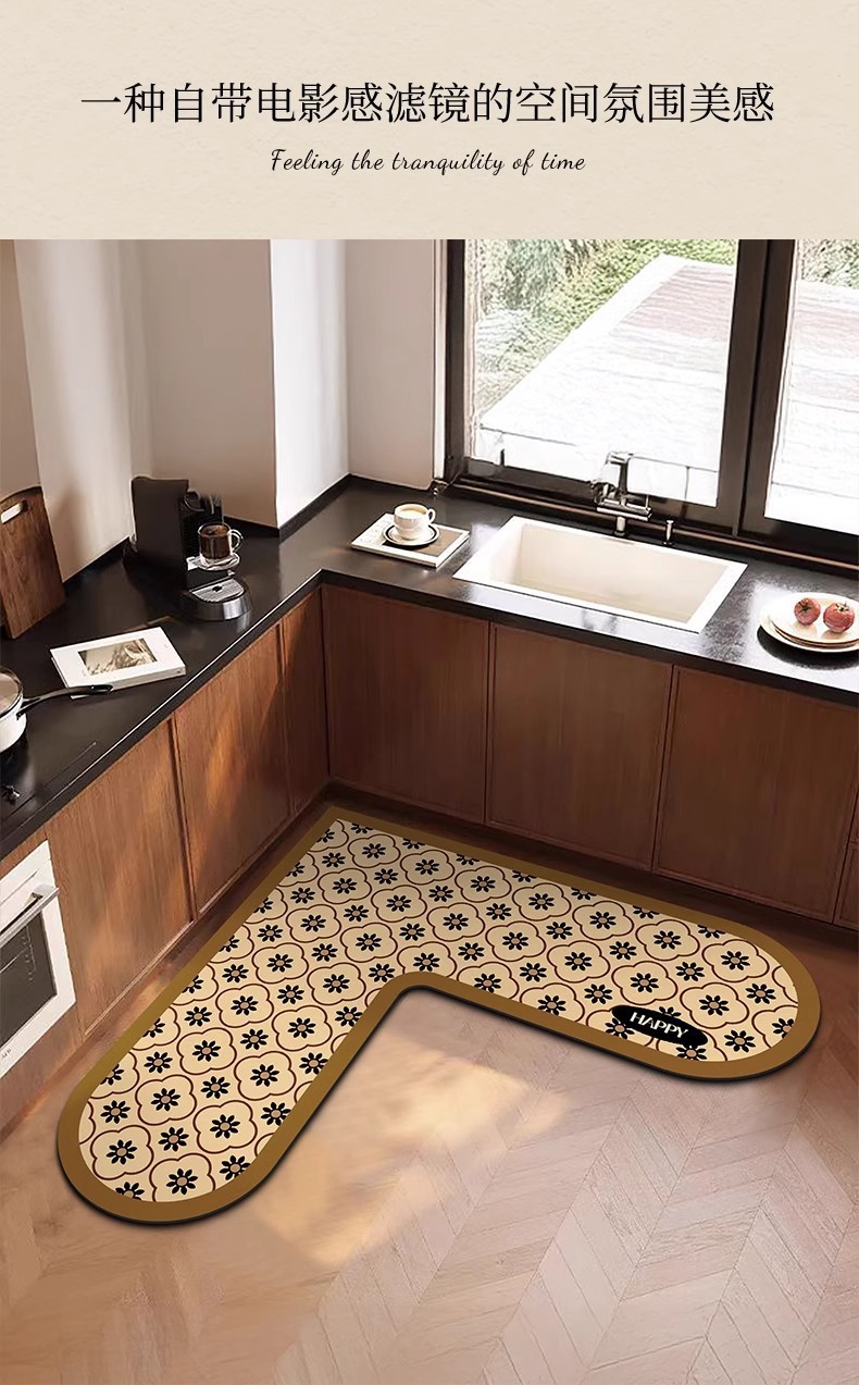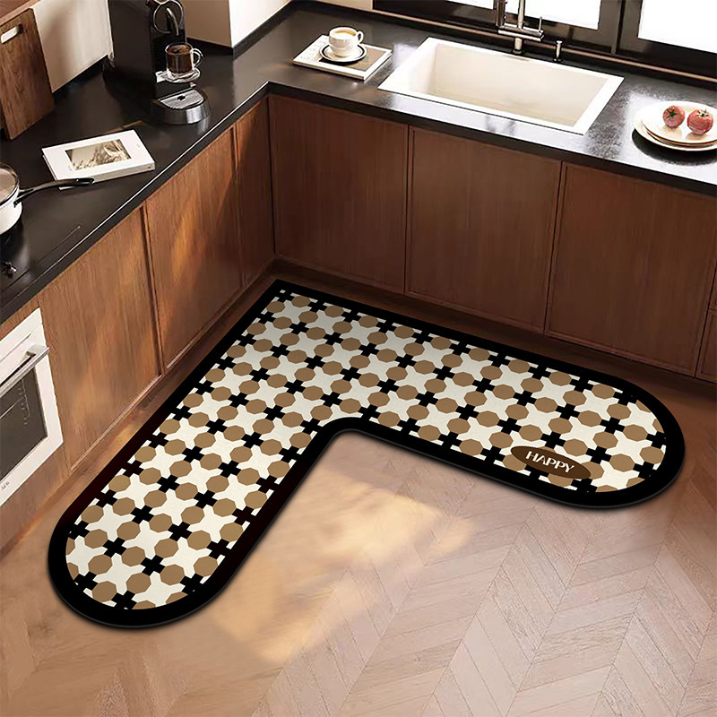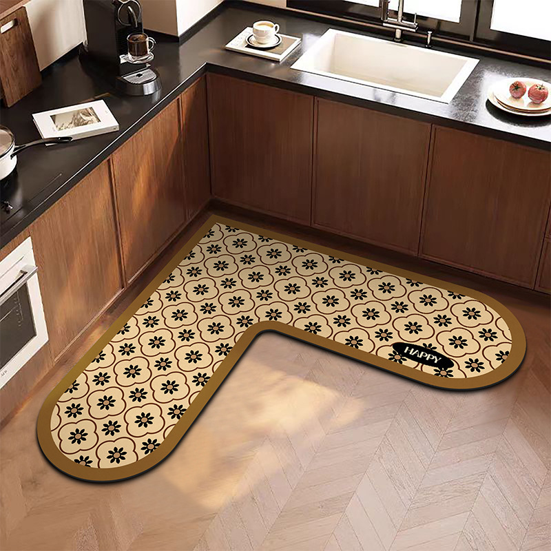 레트로 고급 주방 물 흡수 특수 바닥 매트 L 자형 코너 풋 매트 비 슬립 오일 흡수 워시프리 카펫스토어 가기