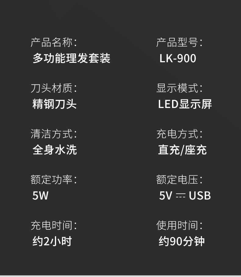 국경을 넘는 새로운 LK-900 다기능 6-in-1 전기 머리 깎기 오일 헤드 조각 전기 머리 깎기 세트