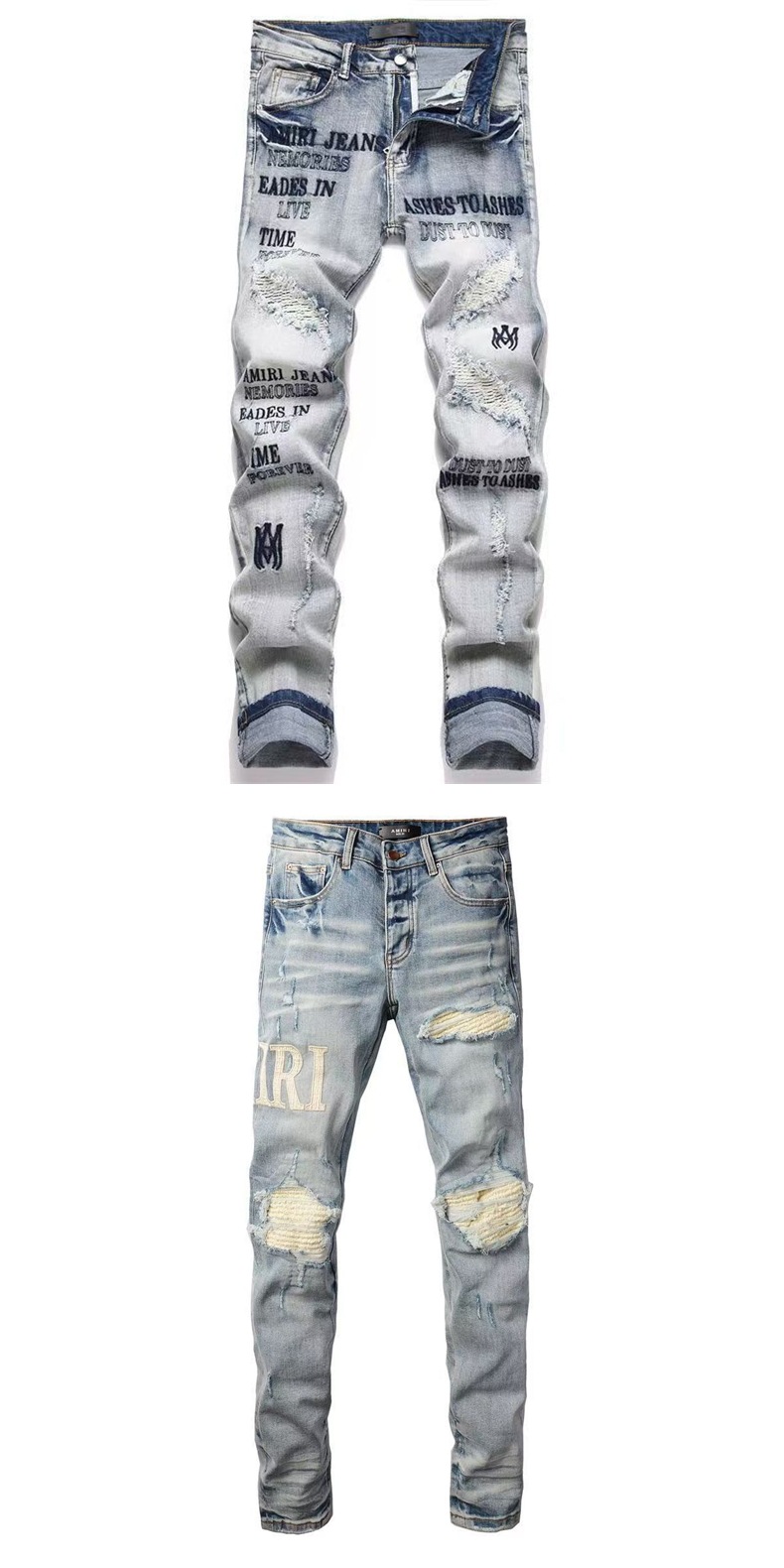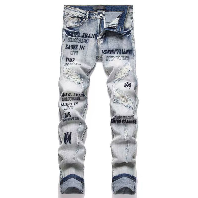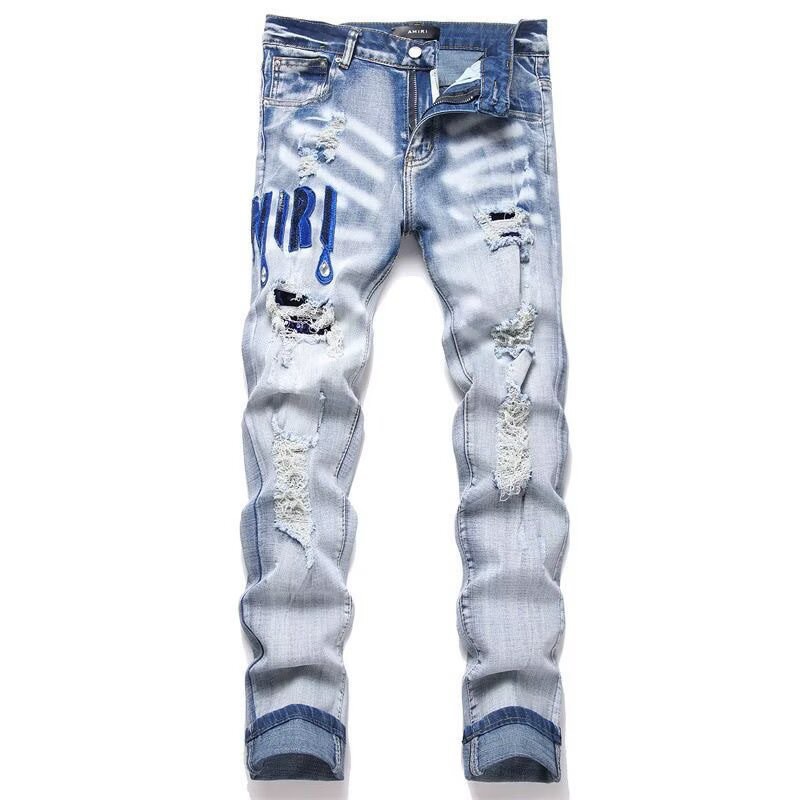슬림핏 빈티지 데님 팬츠 남성용 아메리칸 스타일 트렌디 브랜드 신상 스플라이싱 팬츠 슬림핏 바지 남성용 자수 패치스토어 가기