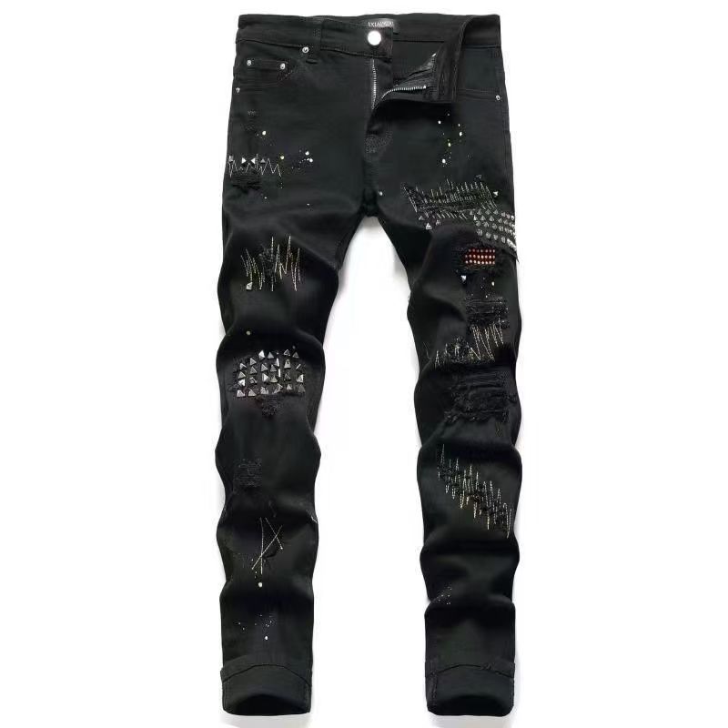 슬림핏 빈티지 데님 팬츠 남성용 아메리칸 스타일 트렌디 브랜드 신상 스플라이싱 팬츠 슬림핏 바지 남성용 자수 패치