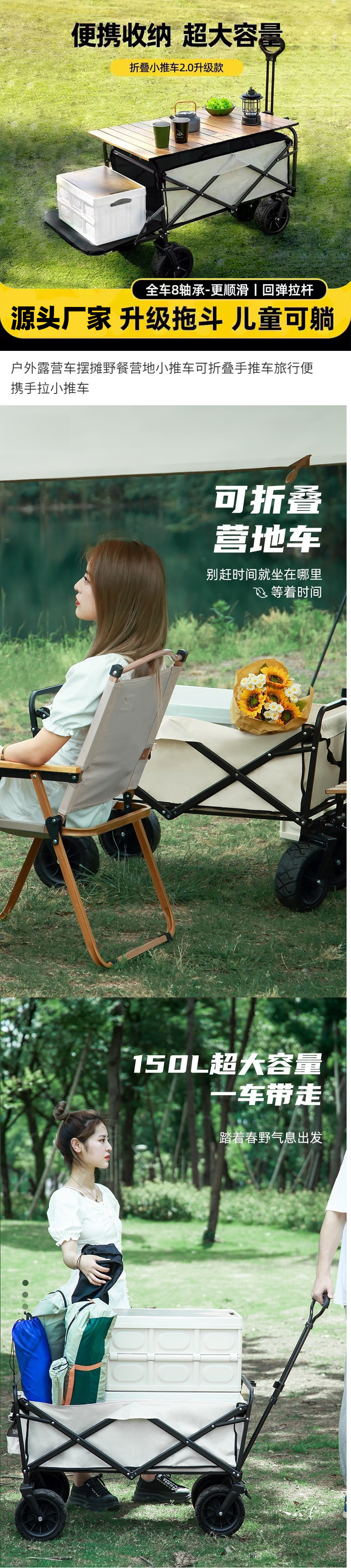 야외 캠핑카 테이블 이중 목적 스톨 피크닉 푸시 트레일러 접이식 휴대용 스톨 트롤리스토어 가기
