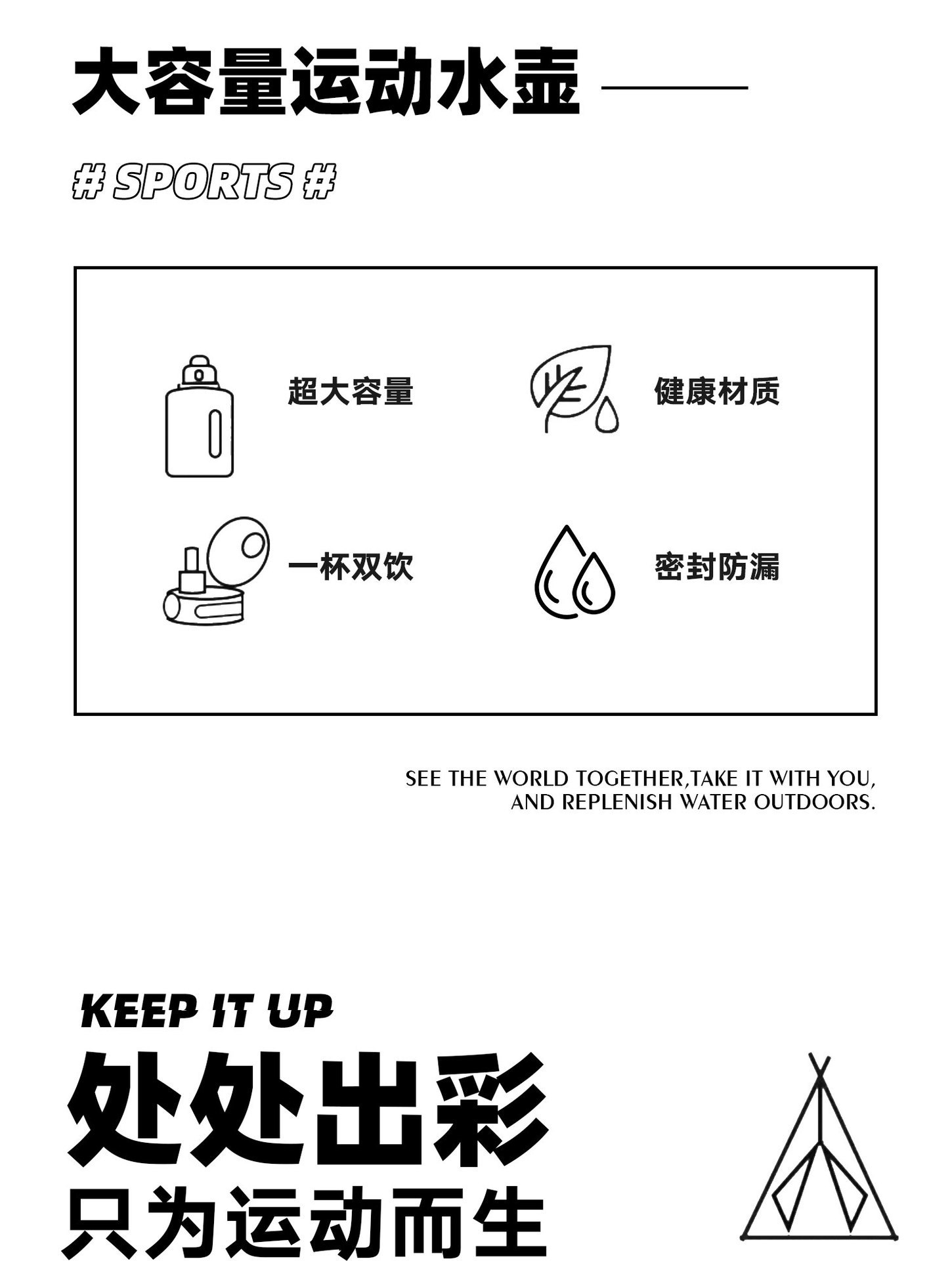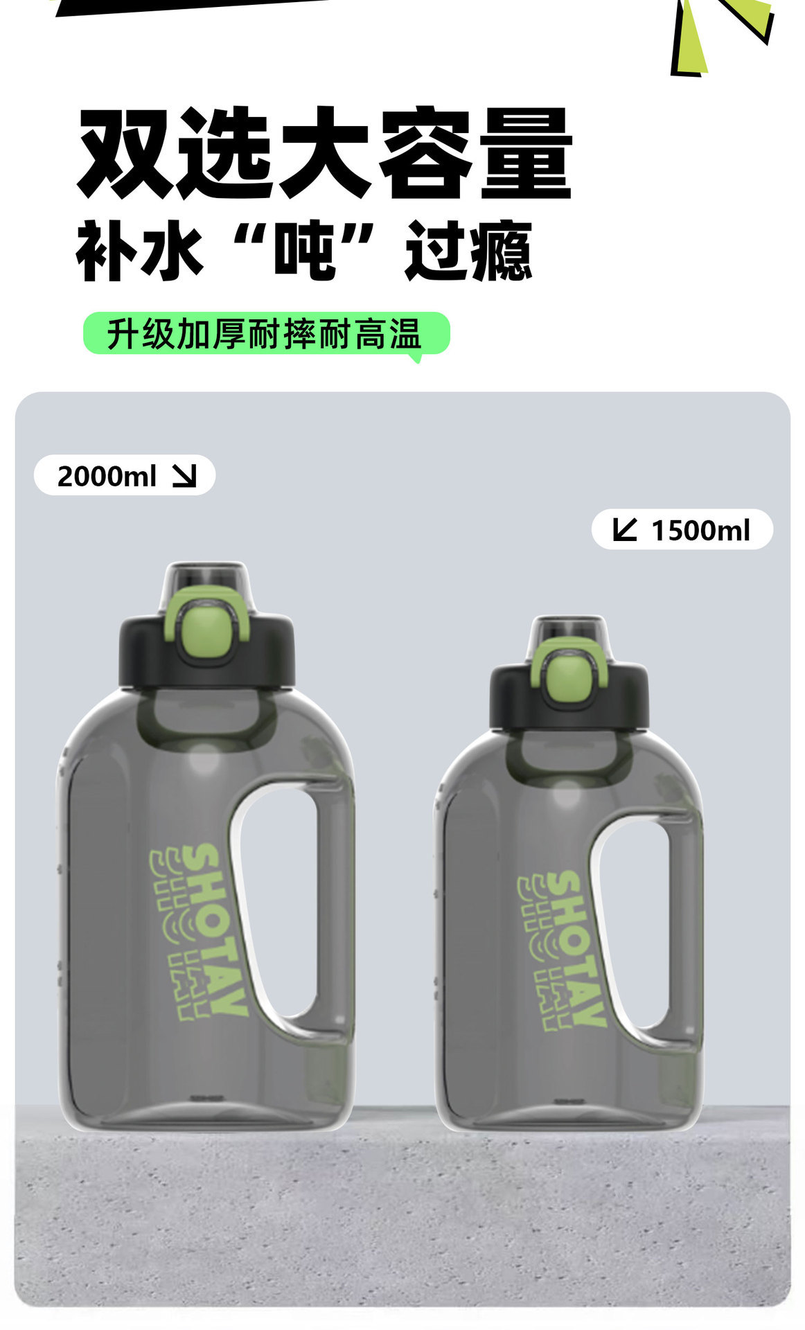 Shangtai 대용량 물병, 고급스러운 야외 스포츠 피트니스 물컵, 휴대용 이중 음료 휴대용 컵