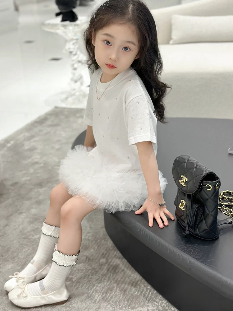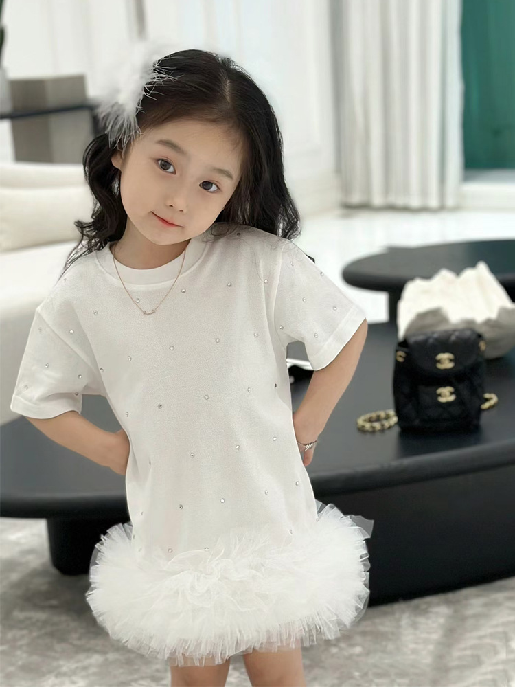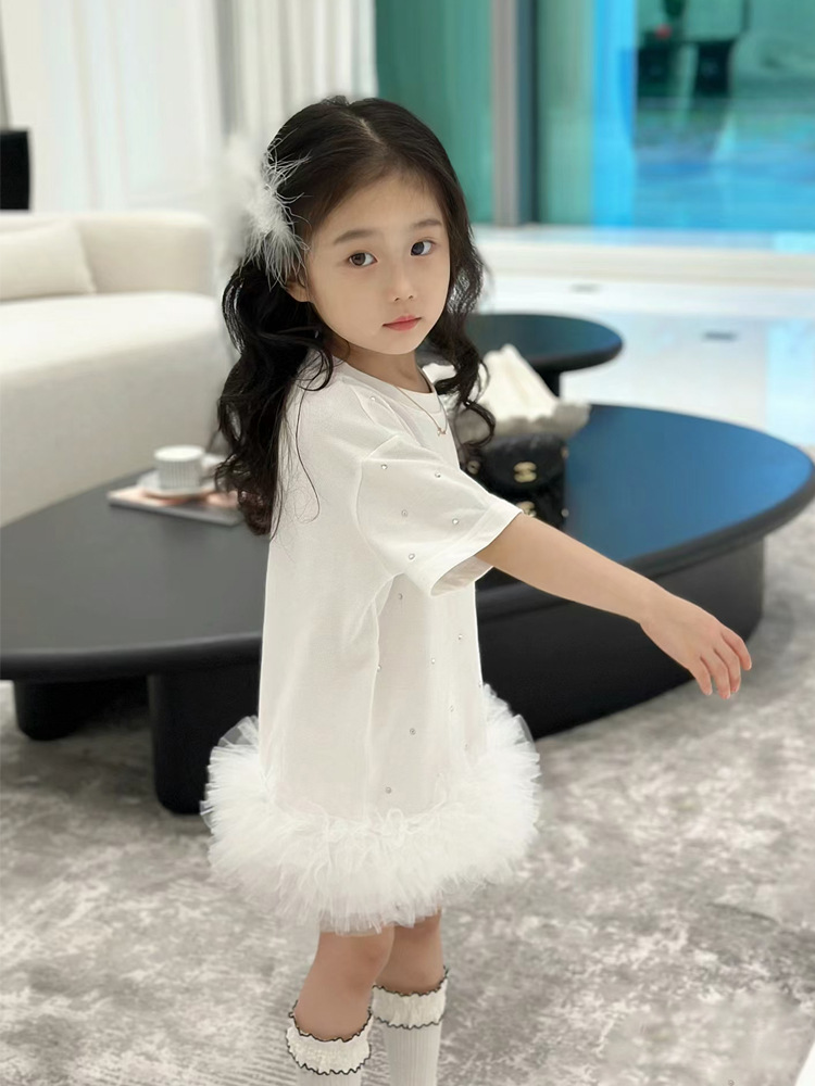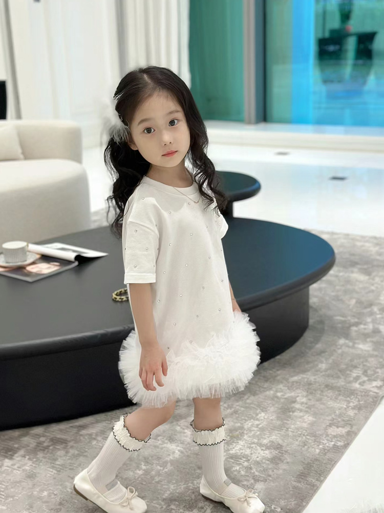 인터넷 축하 소녀 한국 패션 단색 원피스 어린이 여름 새로운 서양 스타일 메쉬 바느질 솔리드 컬러 스커트스토어 가기