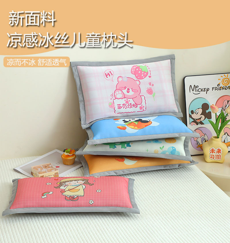 여름 어린이 베개 얼음 실크 유치원 낮잠 베개 30*50 아기 메밀 냉각 베개 귀여운 통기성 및 세탁 가능