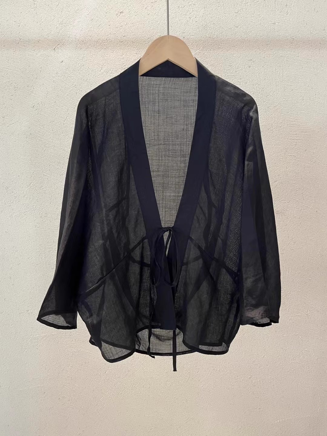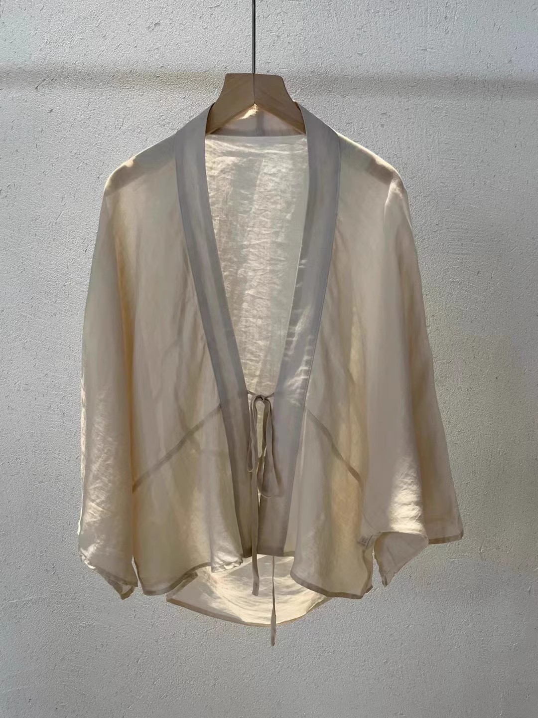 예술적 레이스 업 단색 빛 목도리 에어컨 셔츠 여성용 라미 카디건 짧은 재킷 긴팔 셔츠스토어 가기