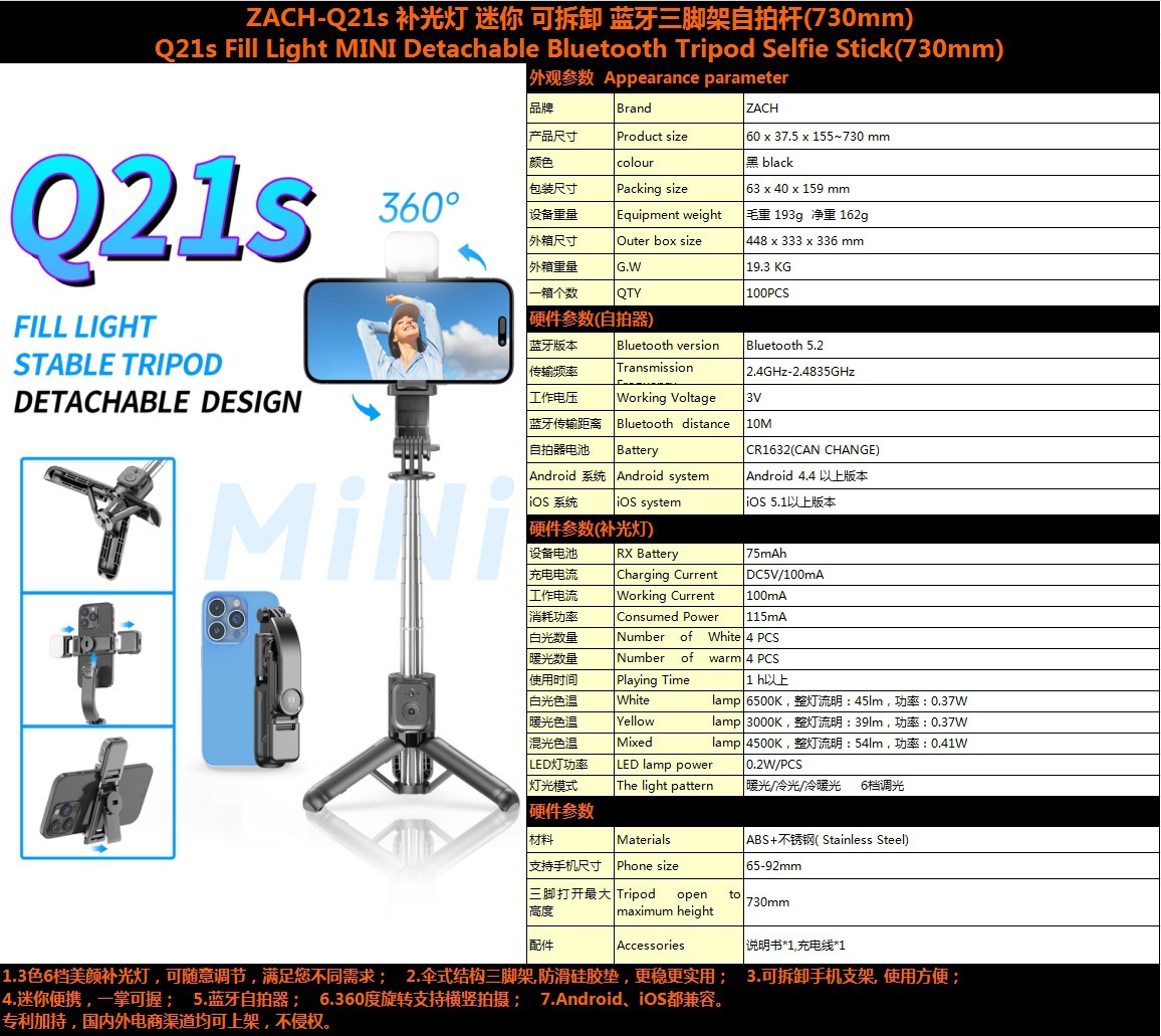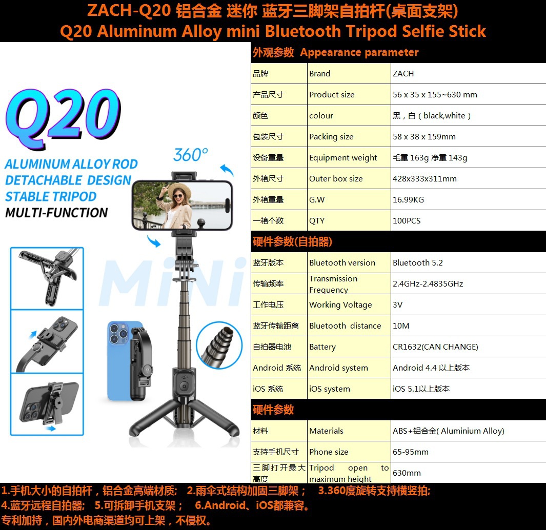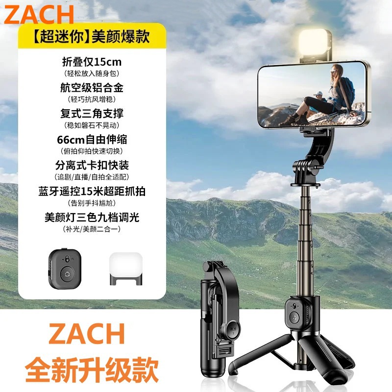 ZACH 휴대 전화 블루투스 셀카 스틱 데스크톱 비디오 라이브 휴대용 미니 스탠드 휴대용 라이트 합금 삼각대