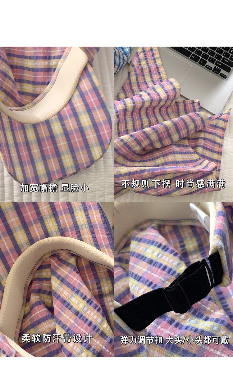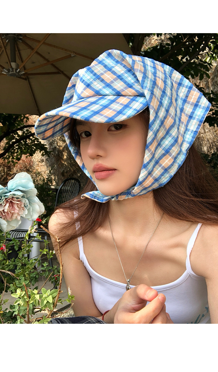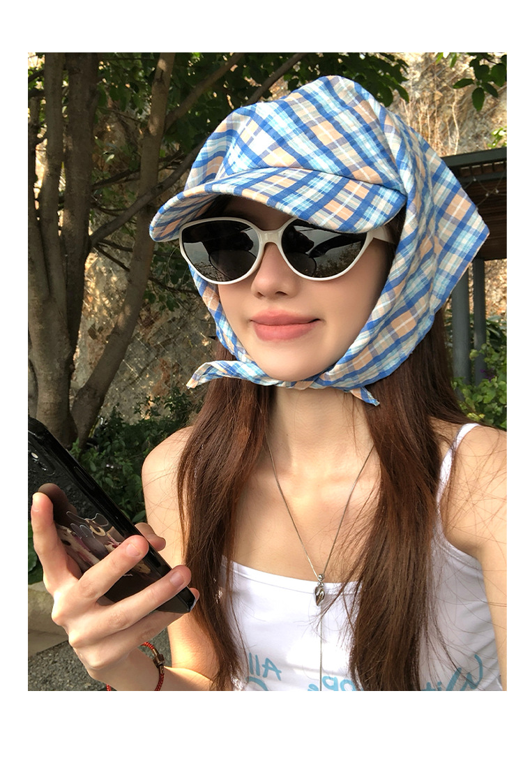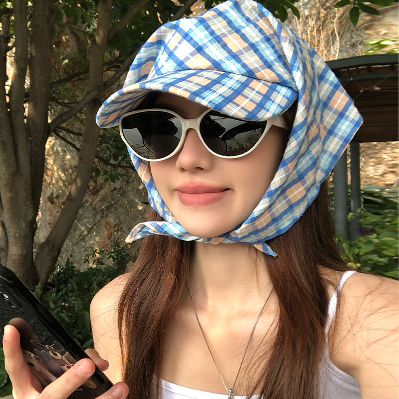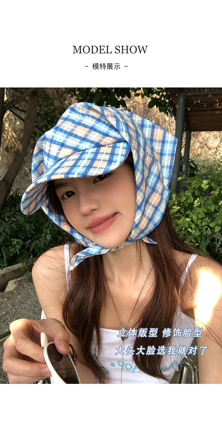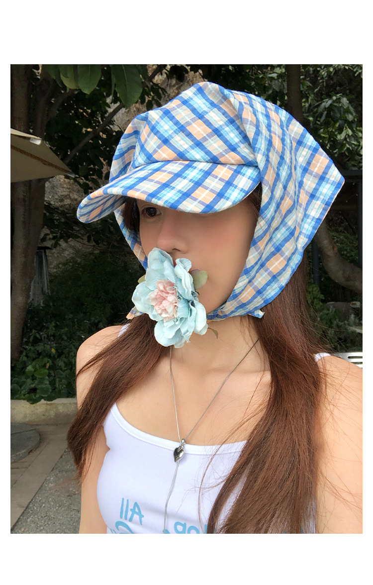 도파민 격자 끈 삼각형 수건 여성의 봄과 여름 2025 새로운 달콤한 목가적 스타일 테이프 캡