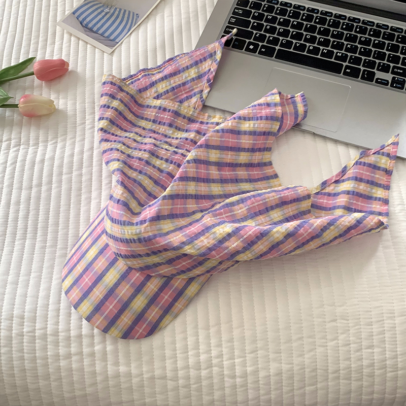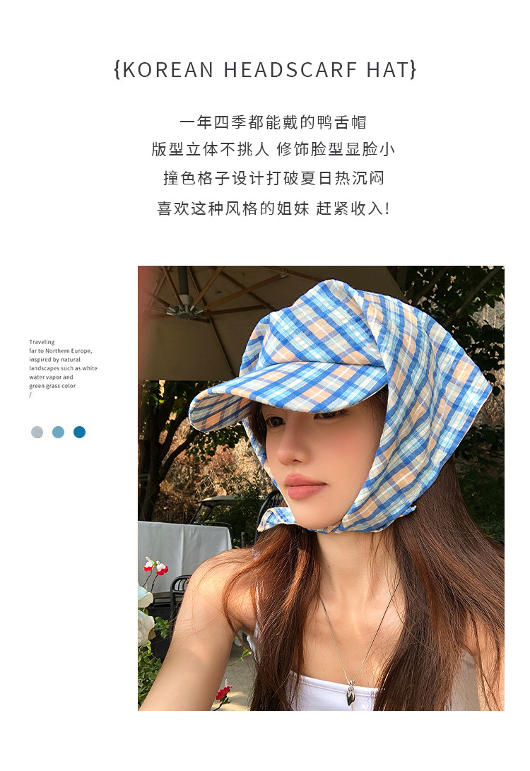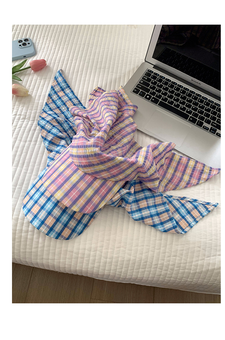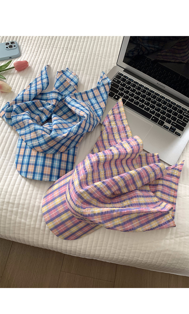 도파민 격자 끈 삼각형 수건 여성의 봄과 여름 2025 새로운 달콤한 목가적 스타일 테이프 캡스토어 가기