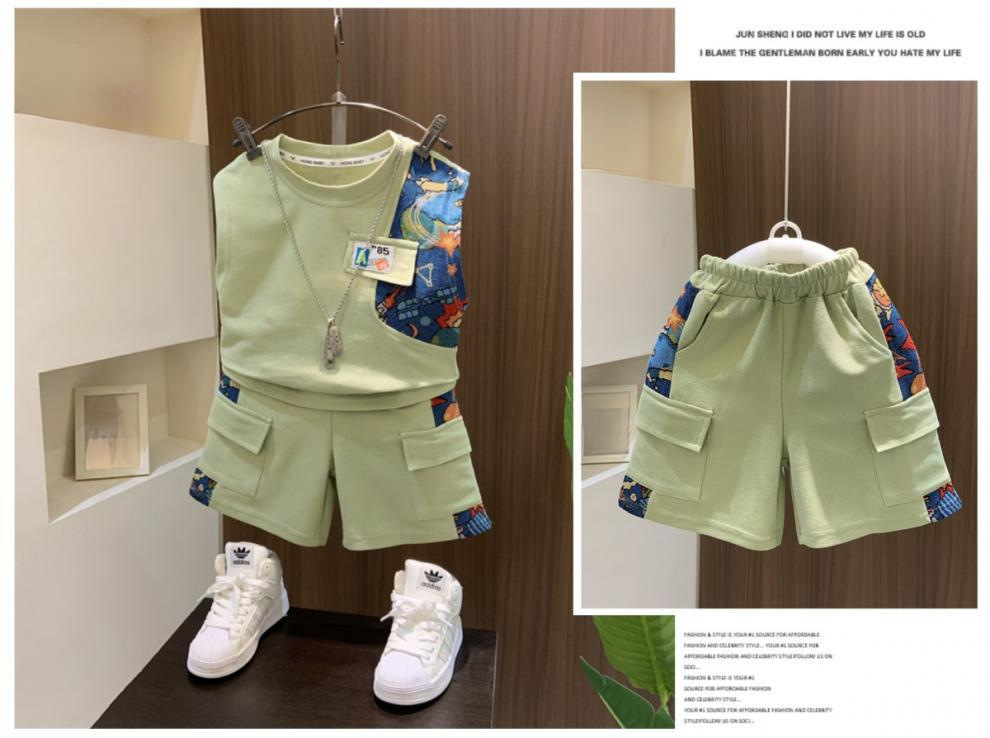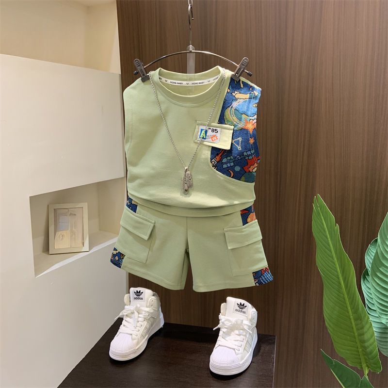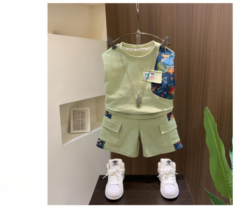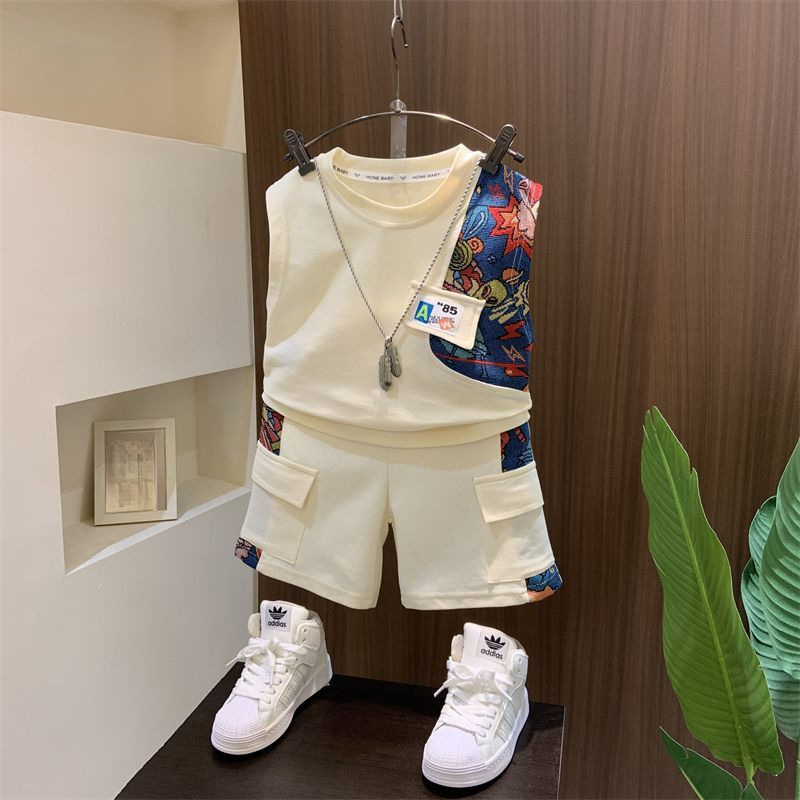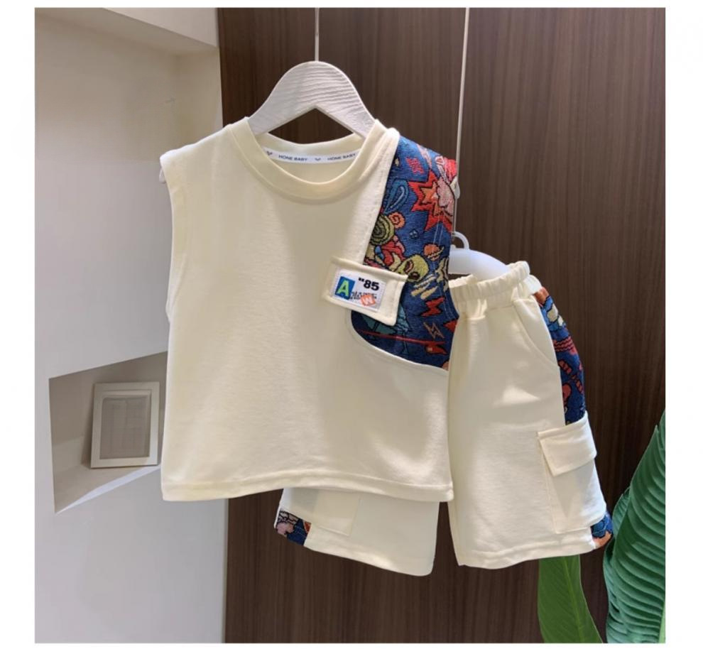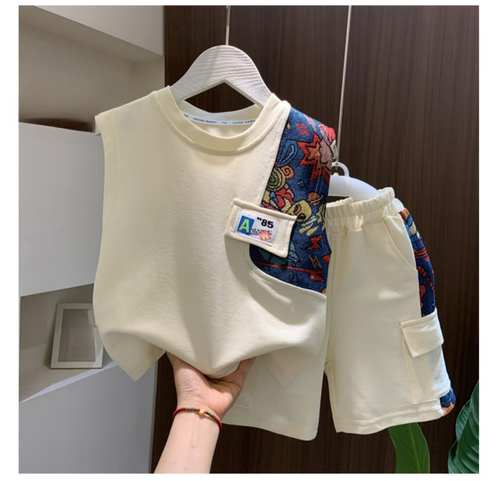어린이 의류 소년 여름 의류 세트 2025 새로운 스타일 어린이 조끼 소년 아기 여름 민소매 얇은 옷