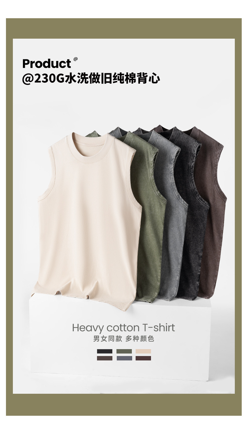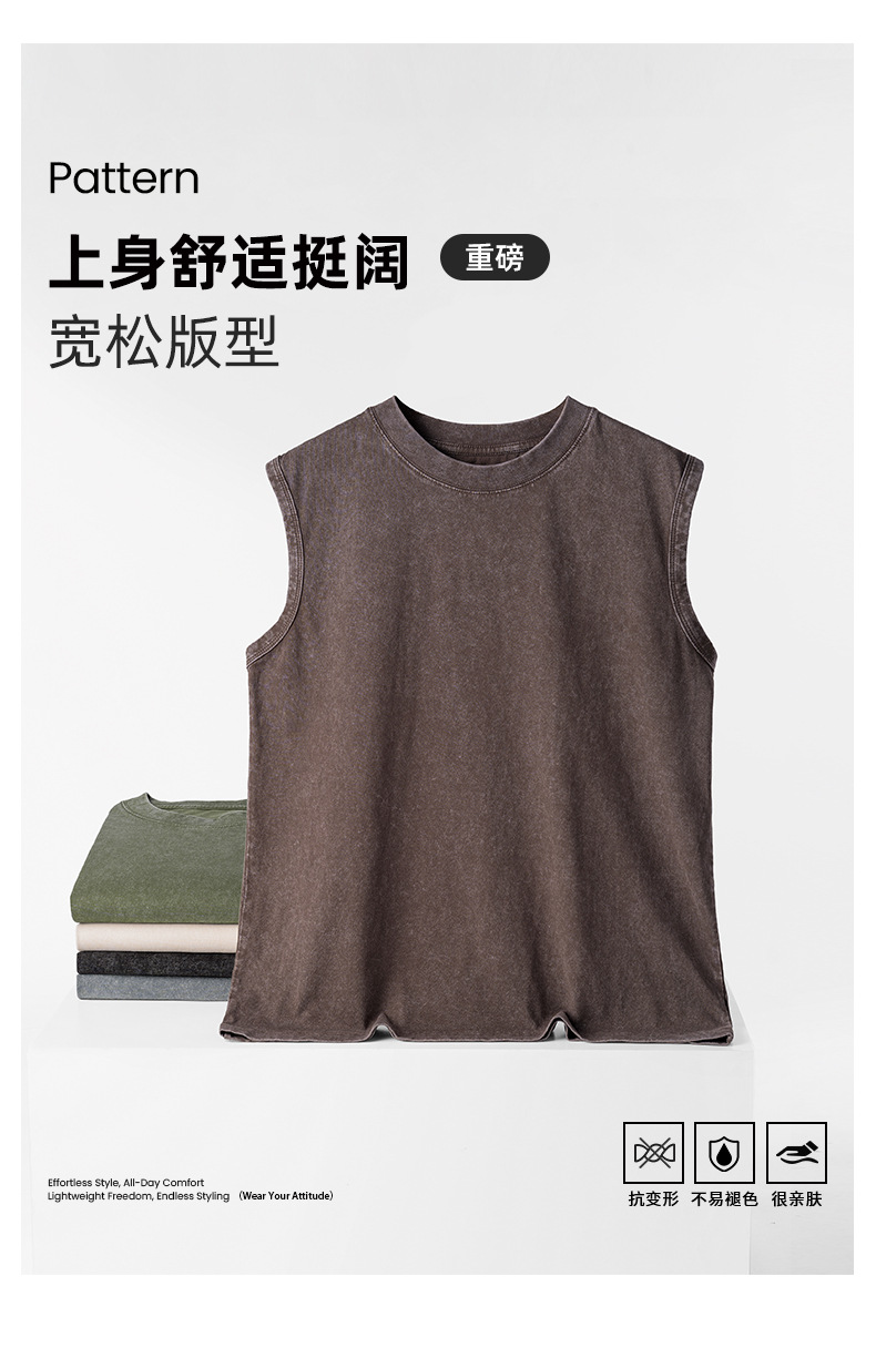 산하이 고래 | 2025 타이드 브랜드 아메리칸 워시 올드 조끼 남자 무거운 230g 느슨한 레저 허리 코트 민소매 티셔츠스토어 가기