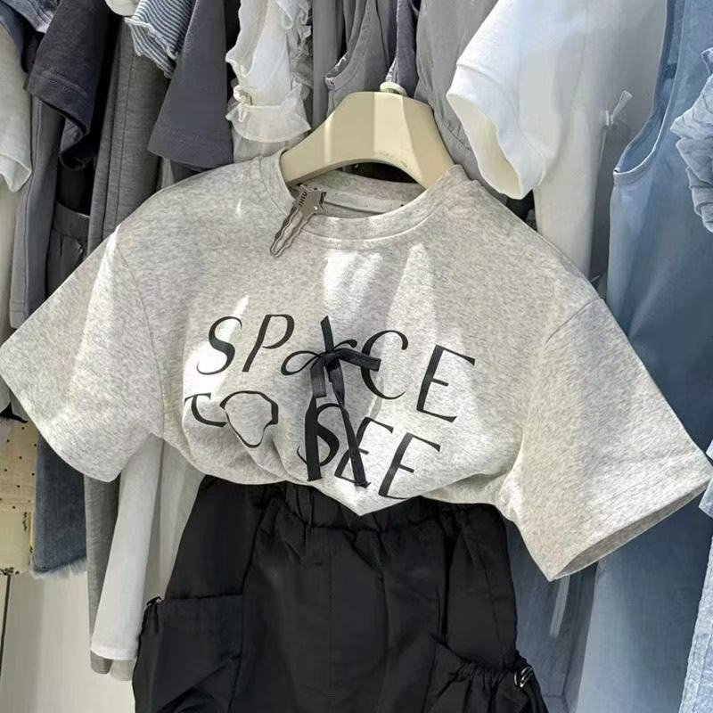 • 그레이 레터 보우 티셔츠