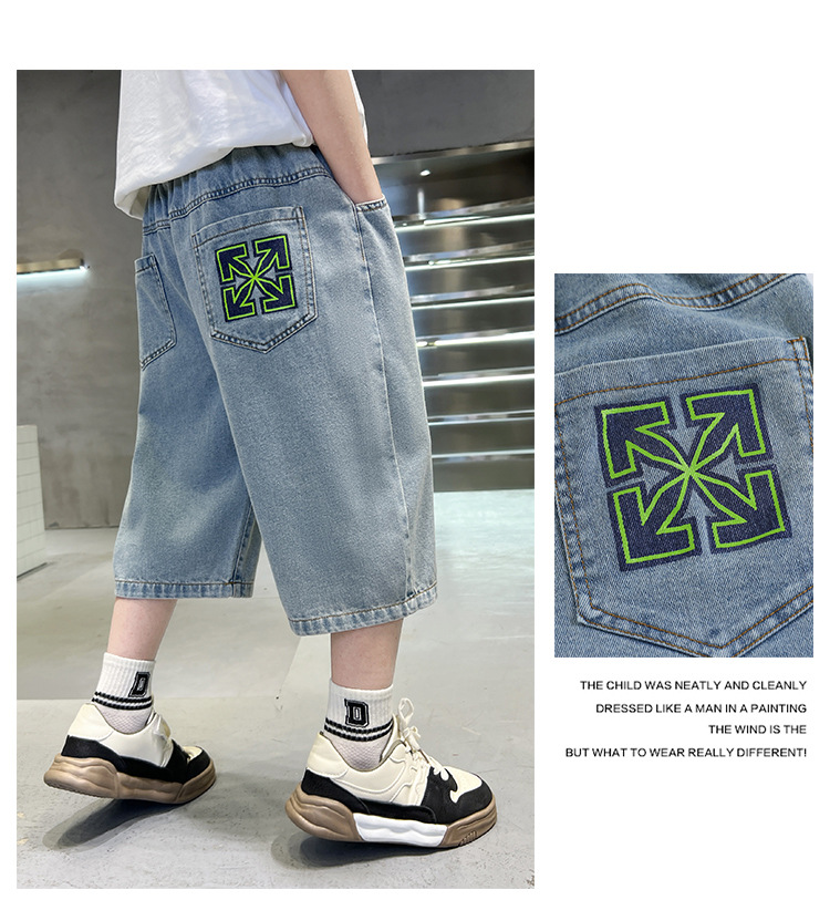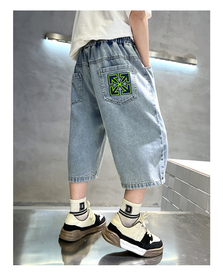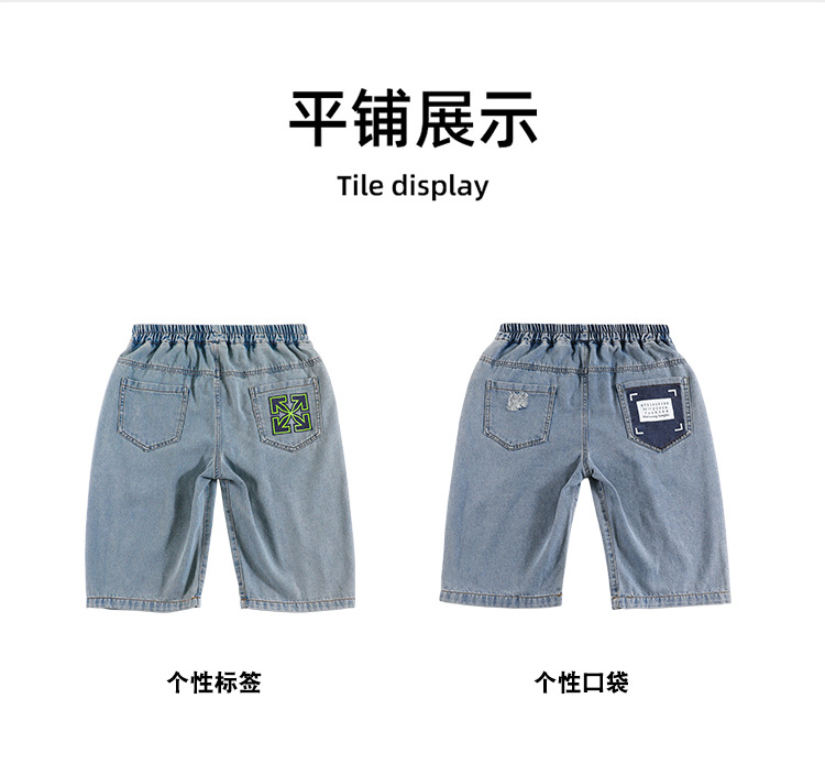 아동복 소년의 데님 반바지 여름 얇은 어린이 카프리 바지 여름 원피스 대형 어린이 바지 소년 서양식 바지스토어 가기