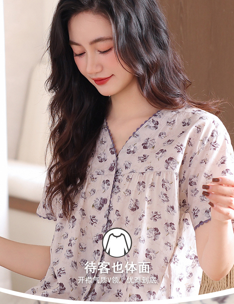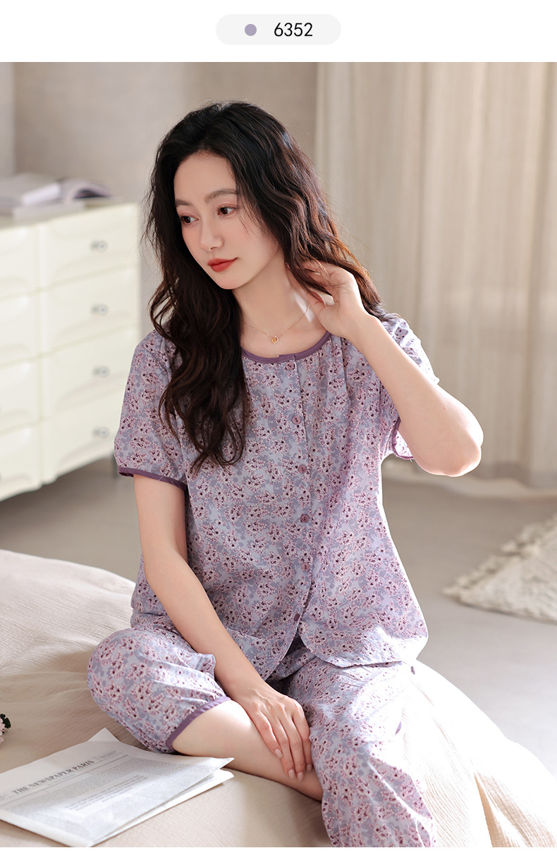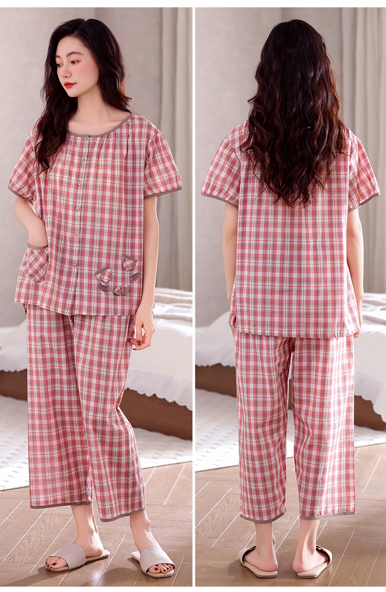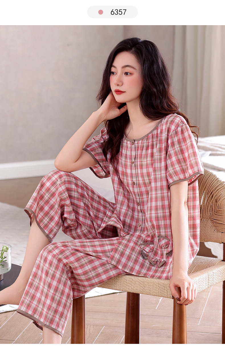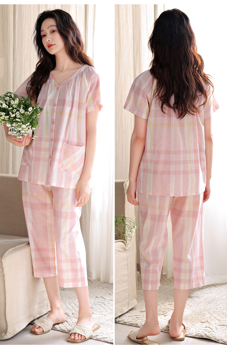 짠 면 잠옷 여성 여름 반팔 카프리 바지 얇은 2025 새 여름 홈 의류 면화 세트스토어 가기