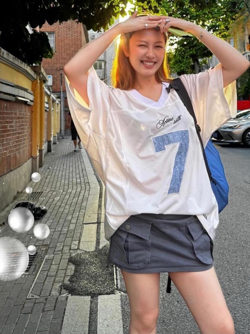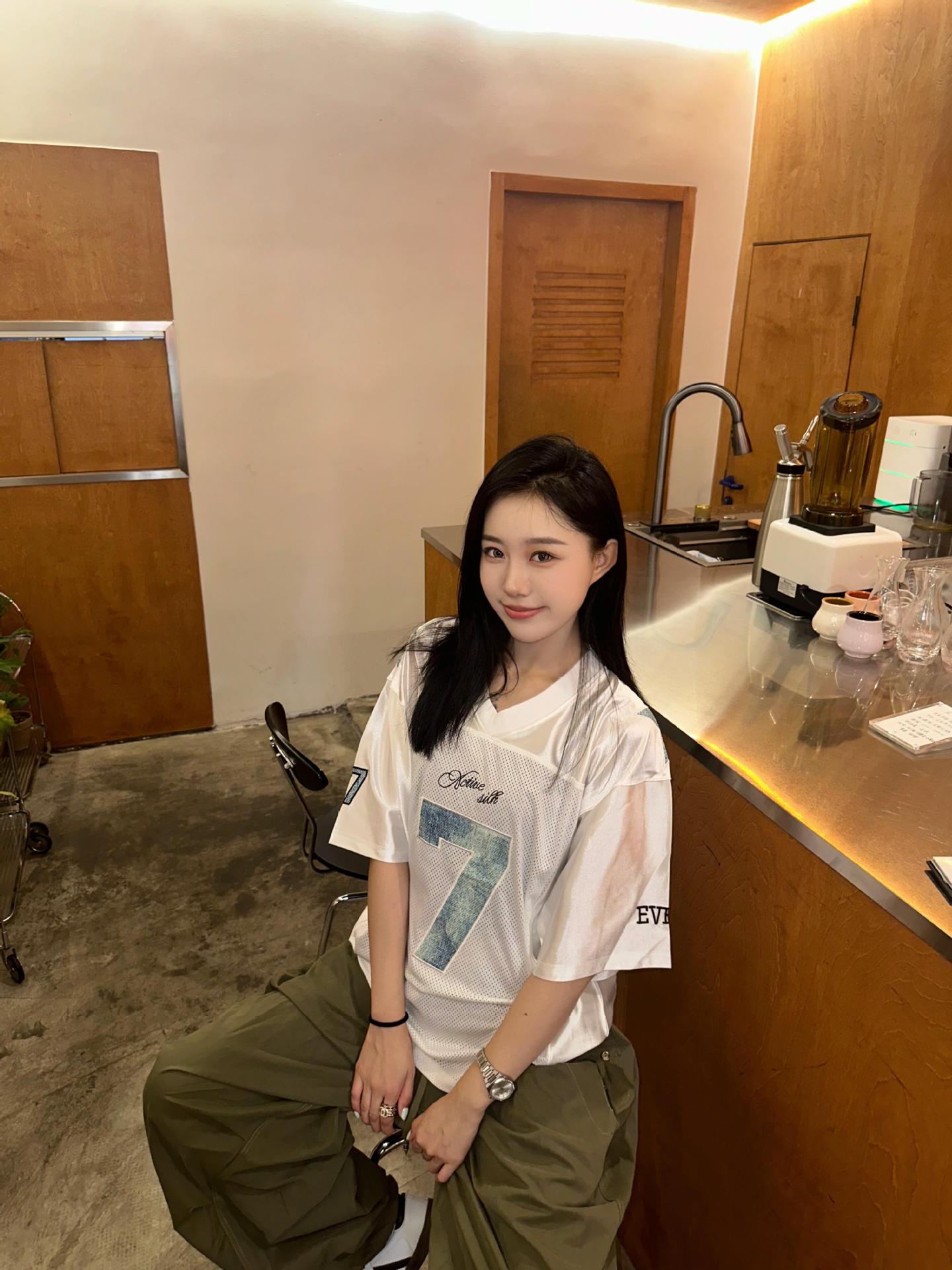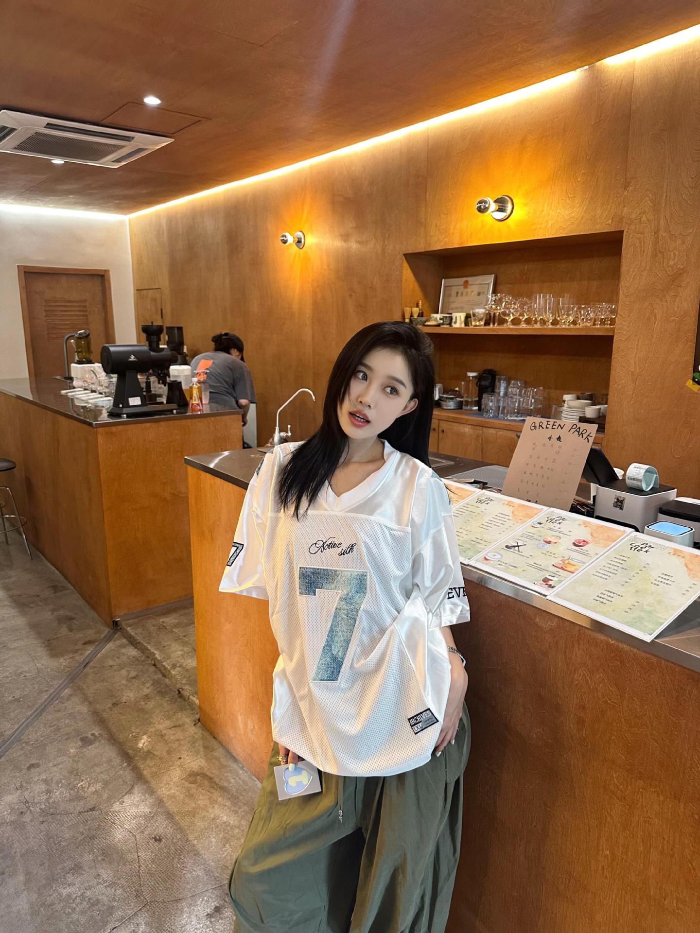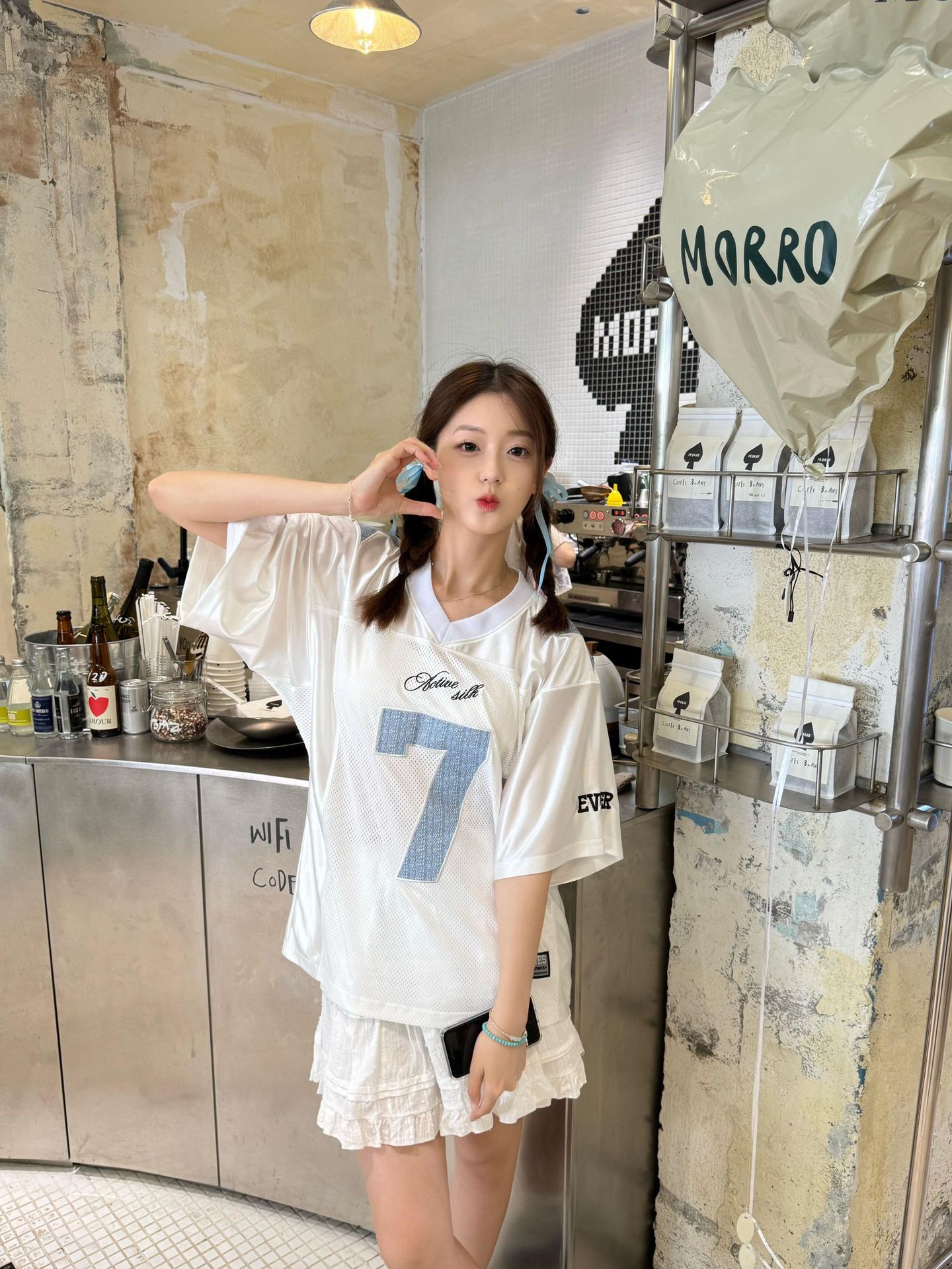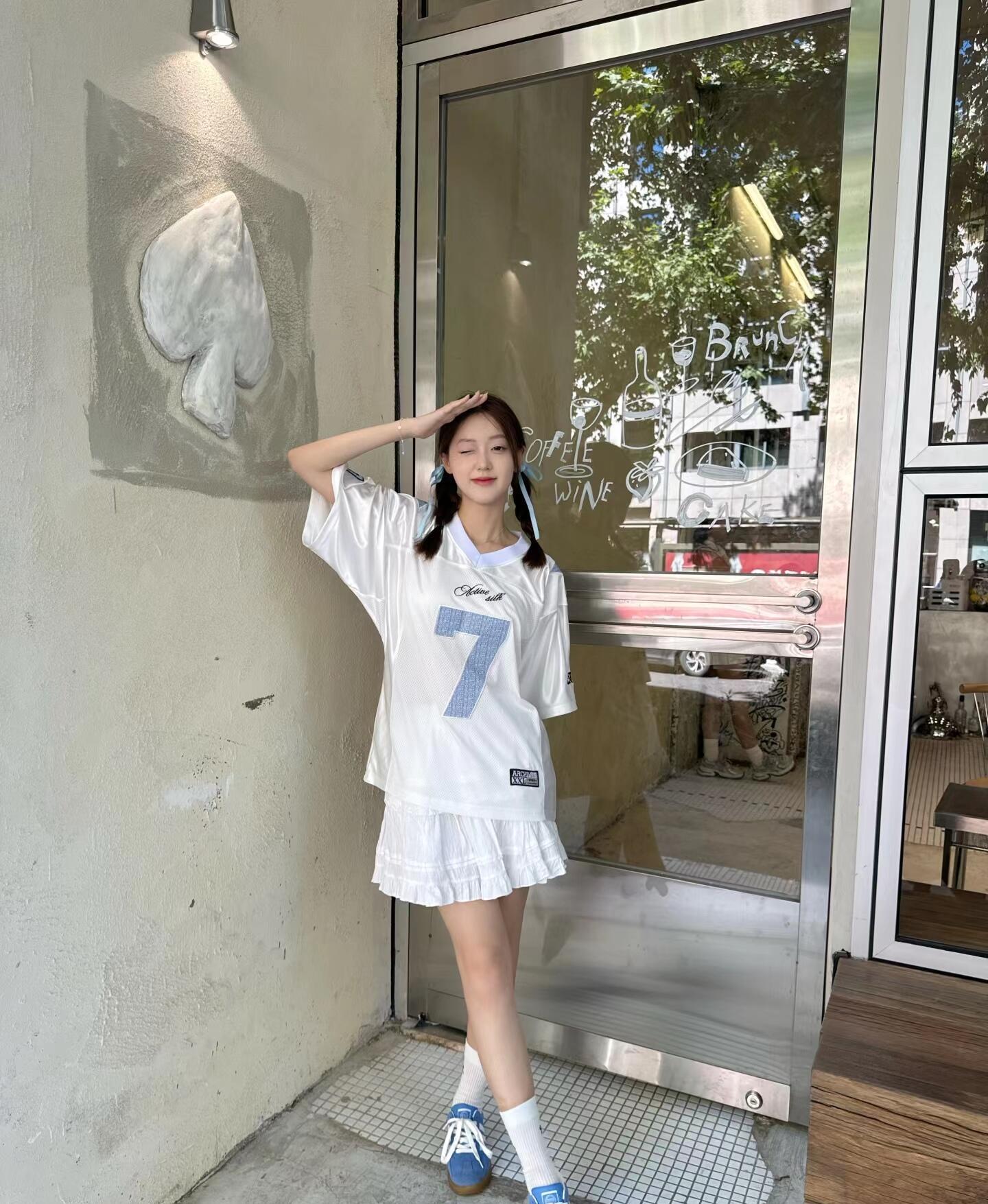 재고 한국 2000 아카이브 Jersey Short Sleeve No.7 Loose Casual American Retro 티셔츠 Li Zhiyan Same Style스토어 가기