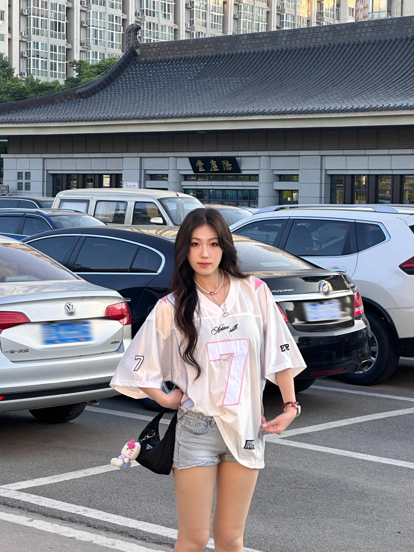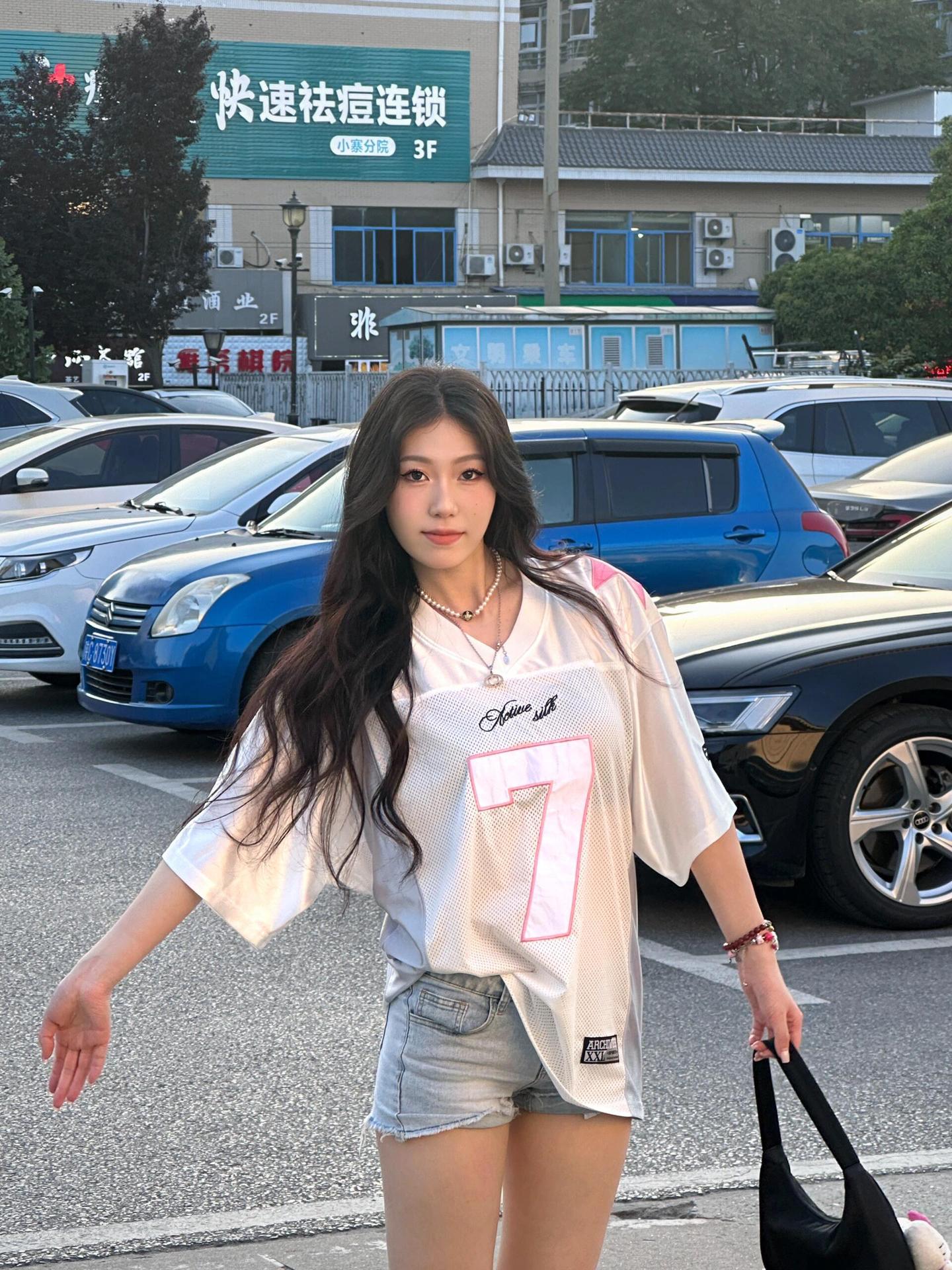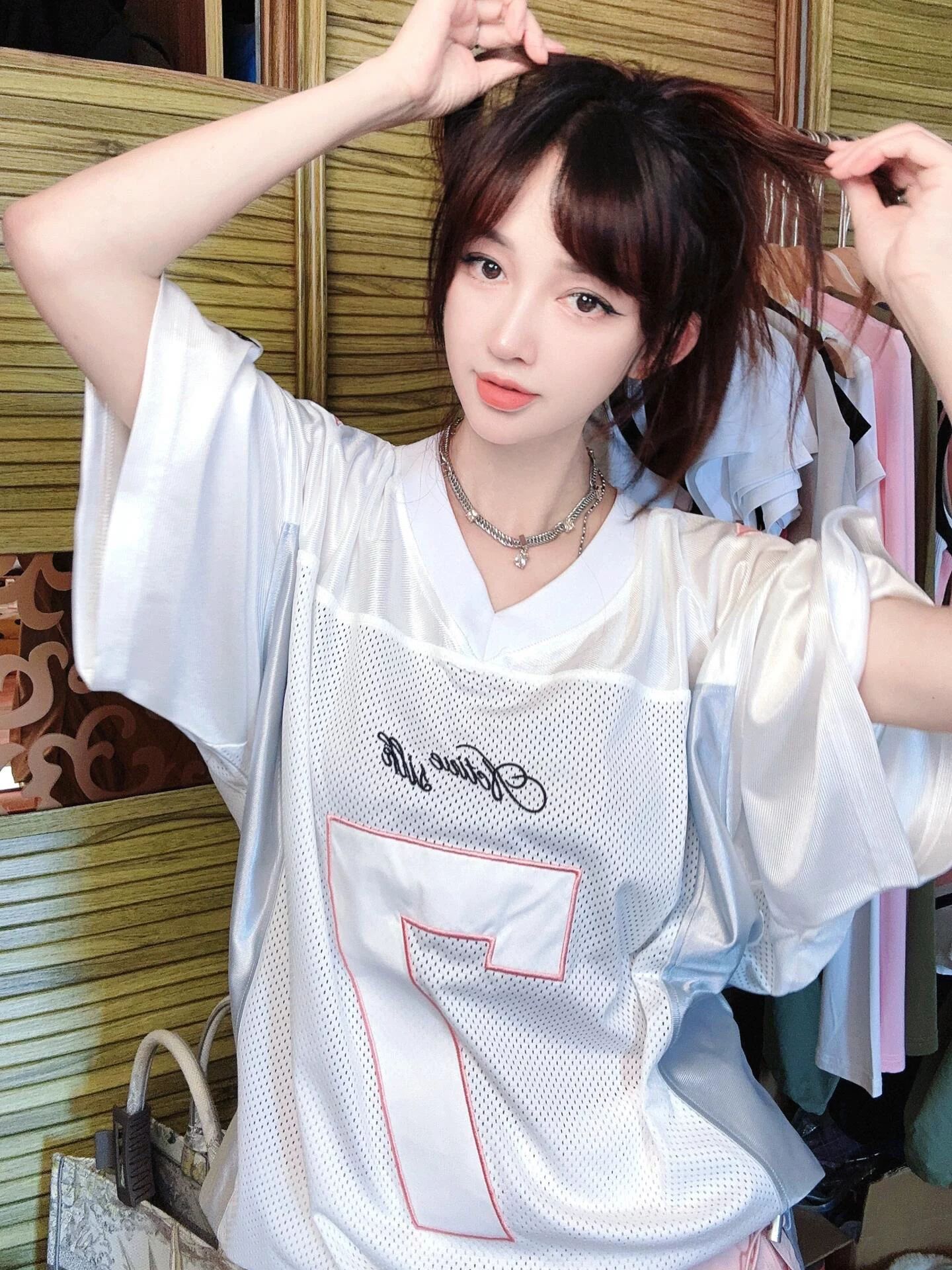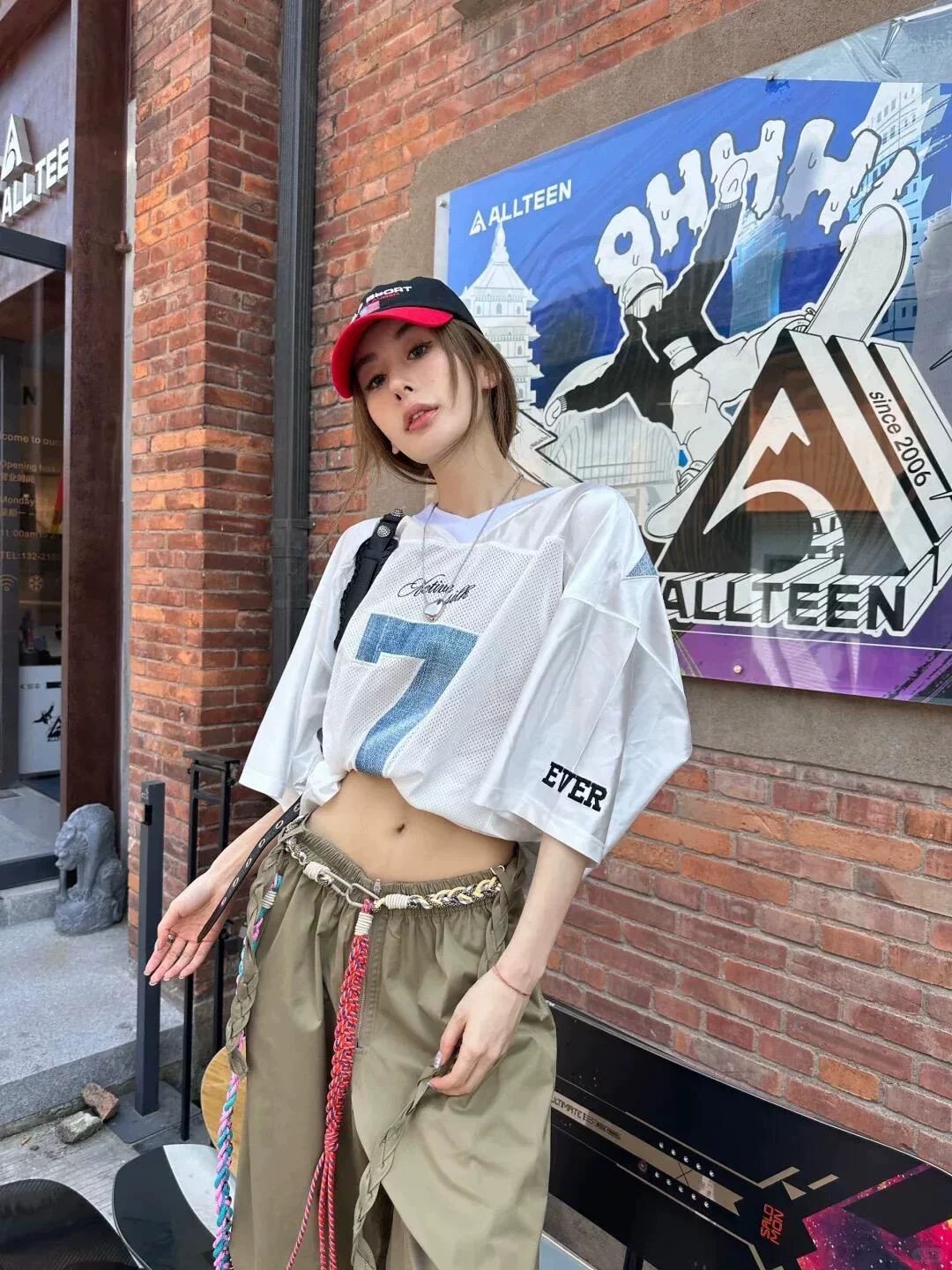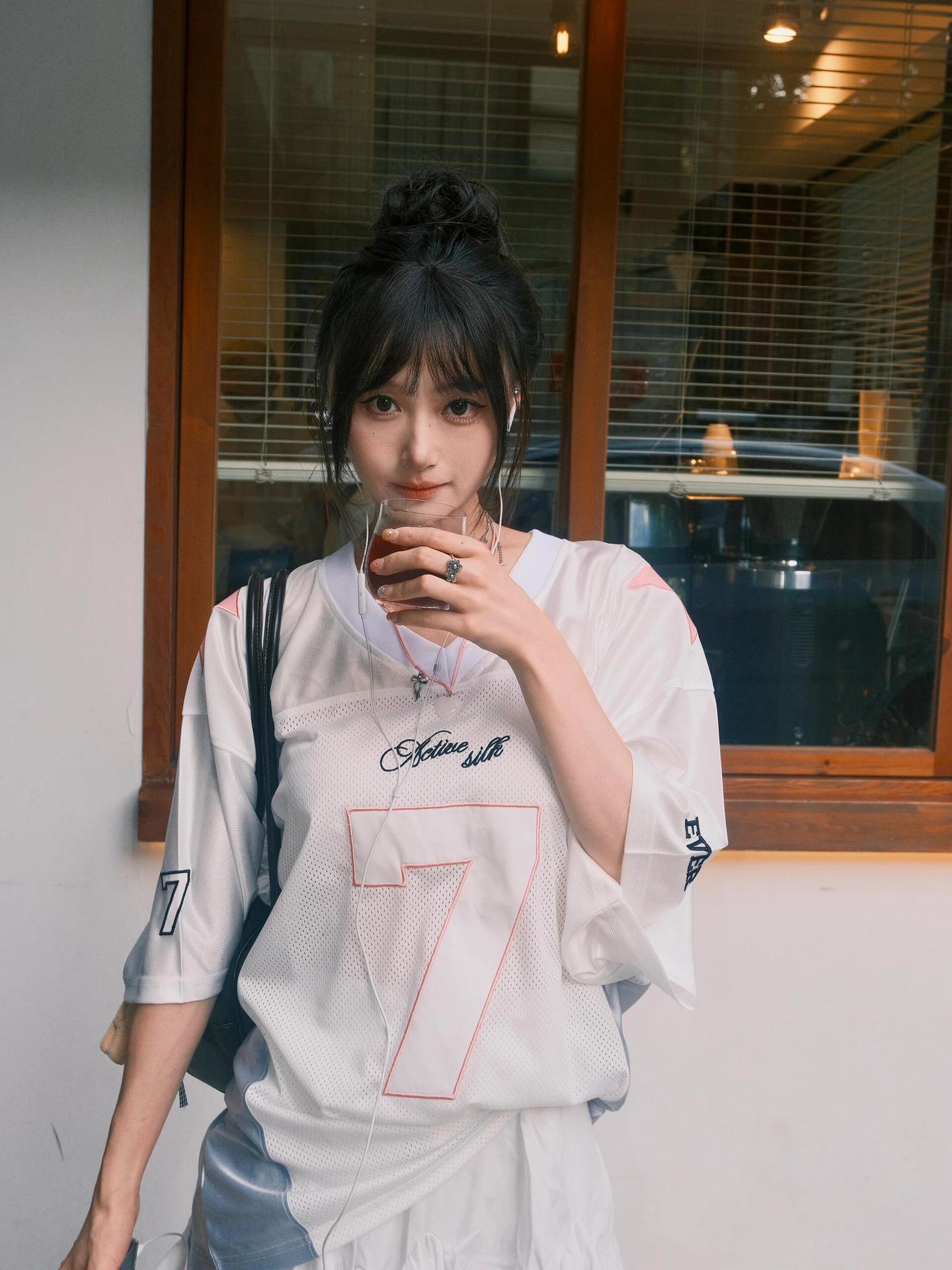 재고 한국 2000 아카이브 Jersey Short Sleeve No.7 Loose Casual American Retro 티셔츠 Li Zhiyan Same Style스토어 가기