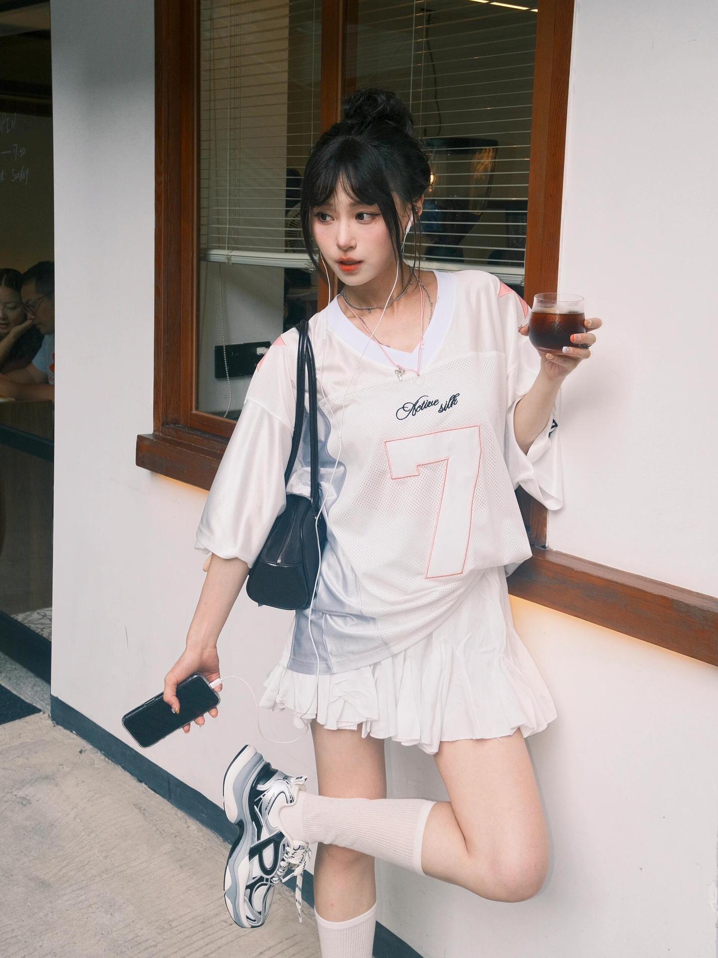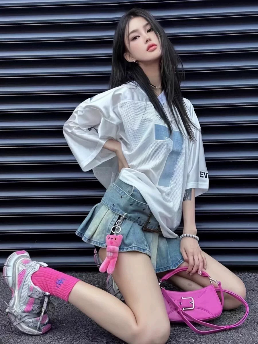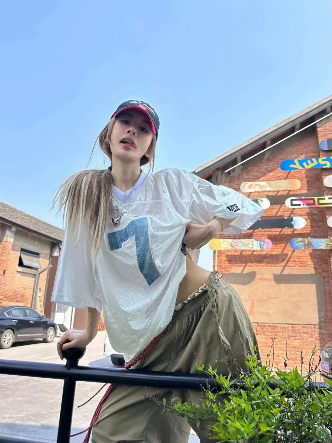 재고 한국 2000 아카이브 Jersey Short Sleeve No.7 Loose Casual American Retro 티셔츠 Li Zhiyan Same Style