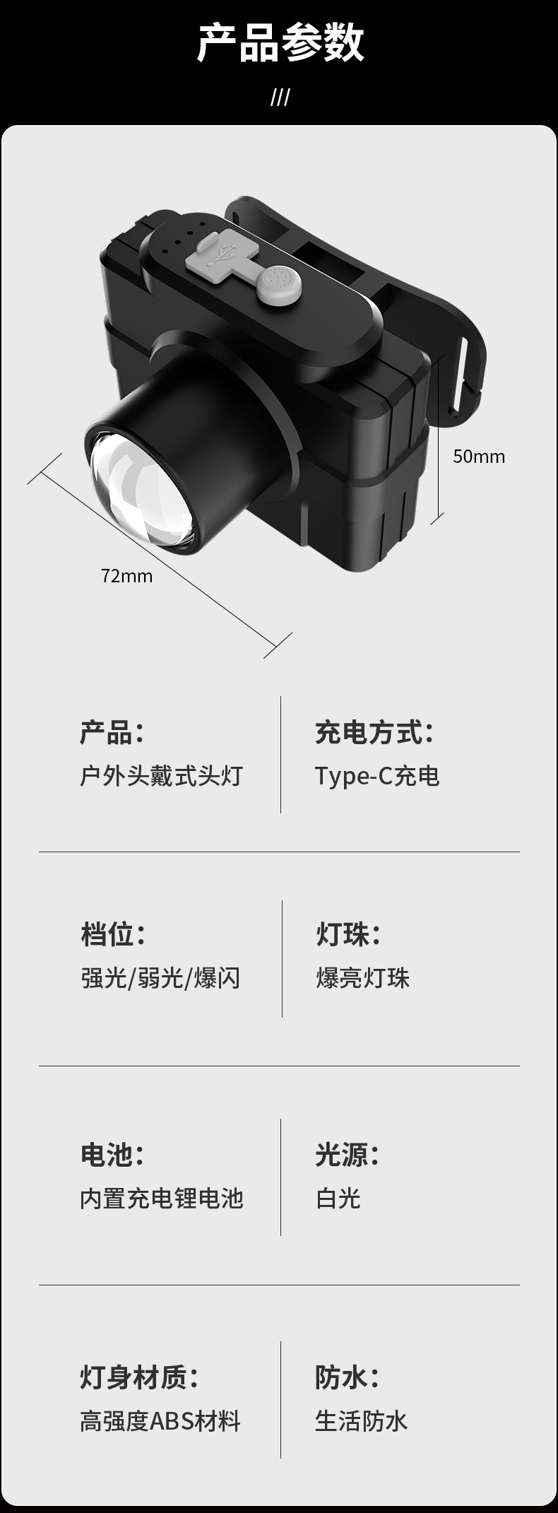 • 고정 초점 USB 케이블 충전(접이식 불가)